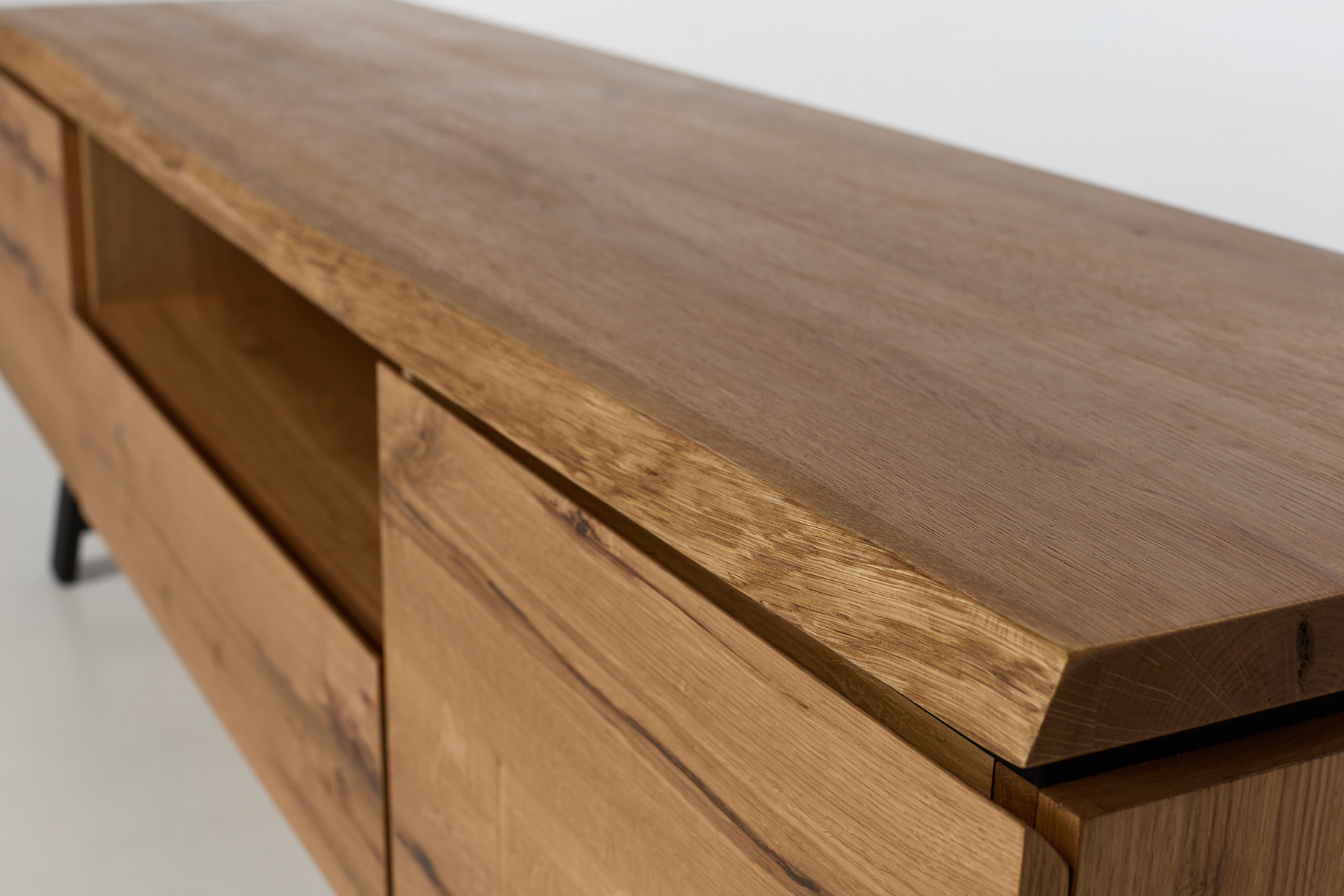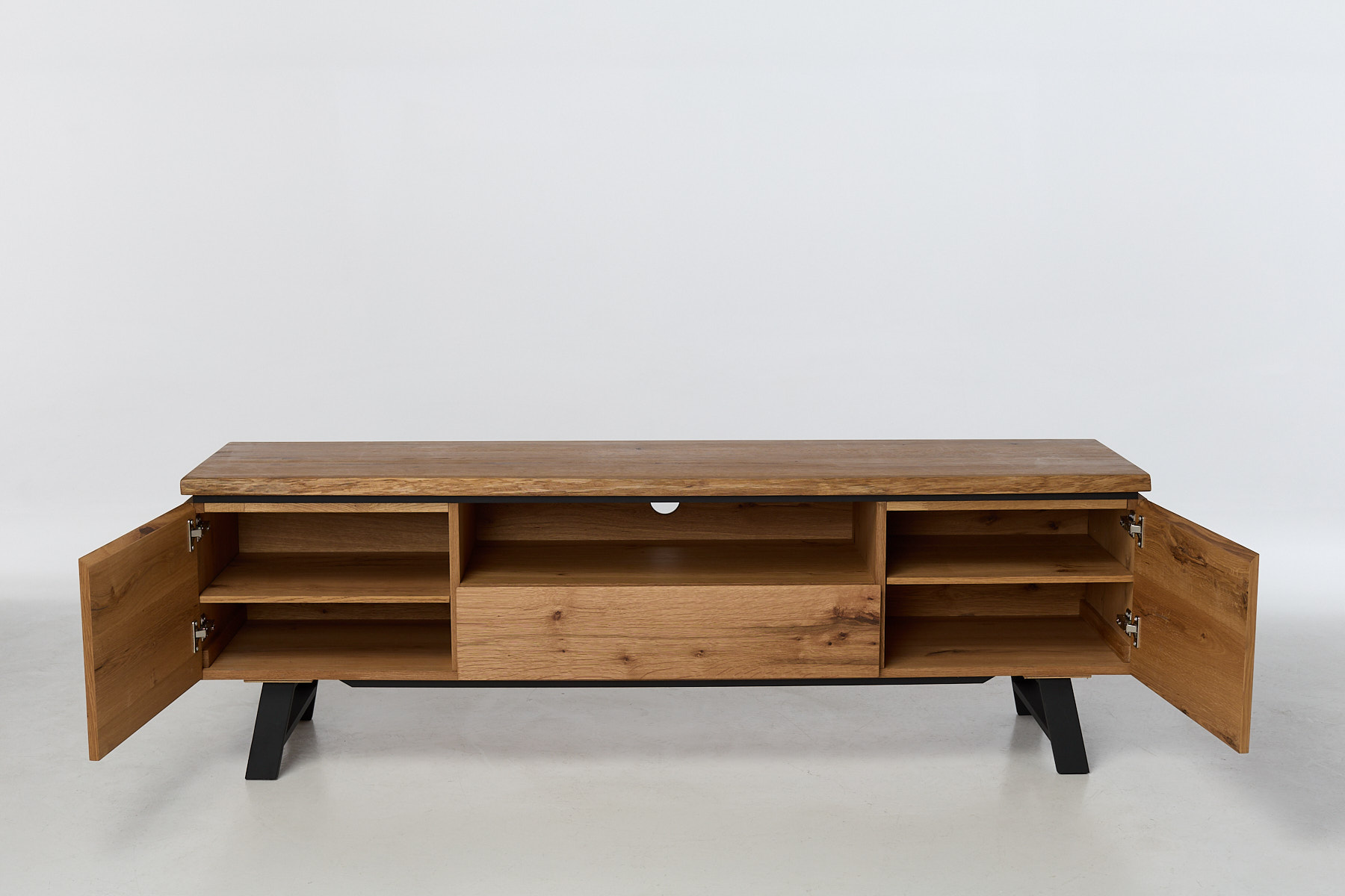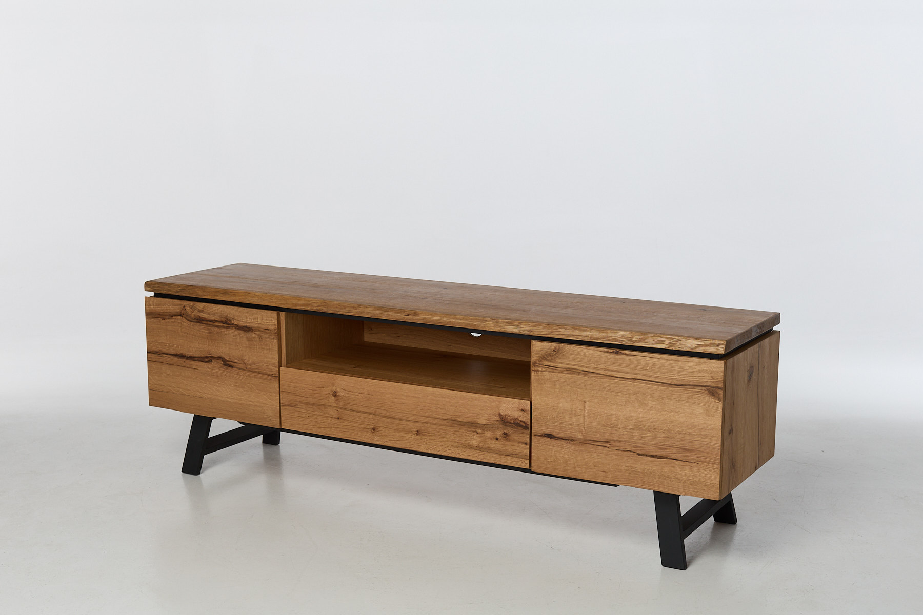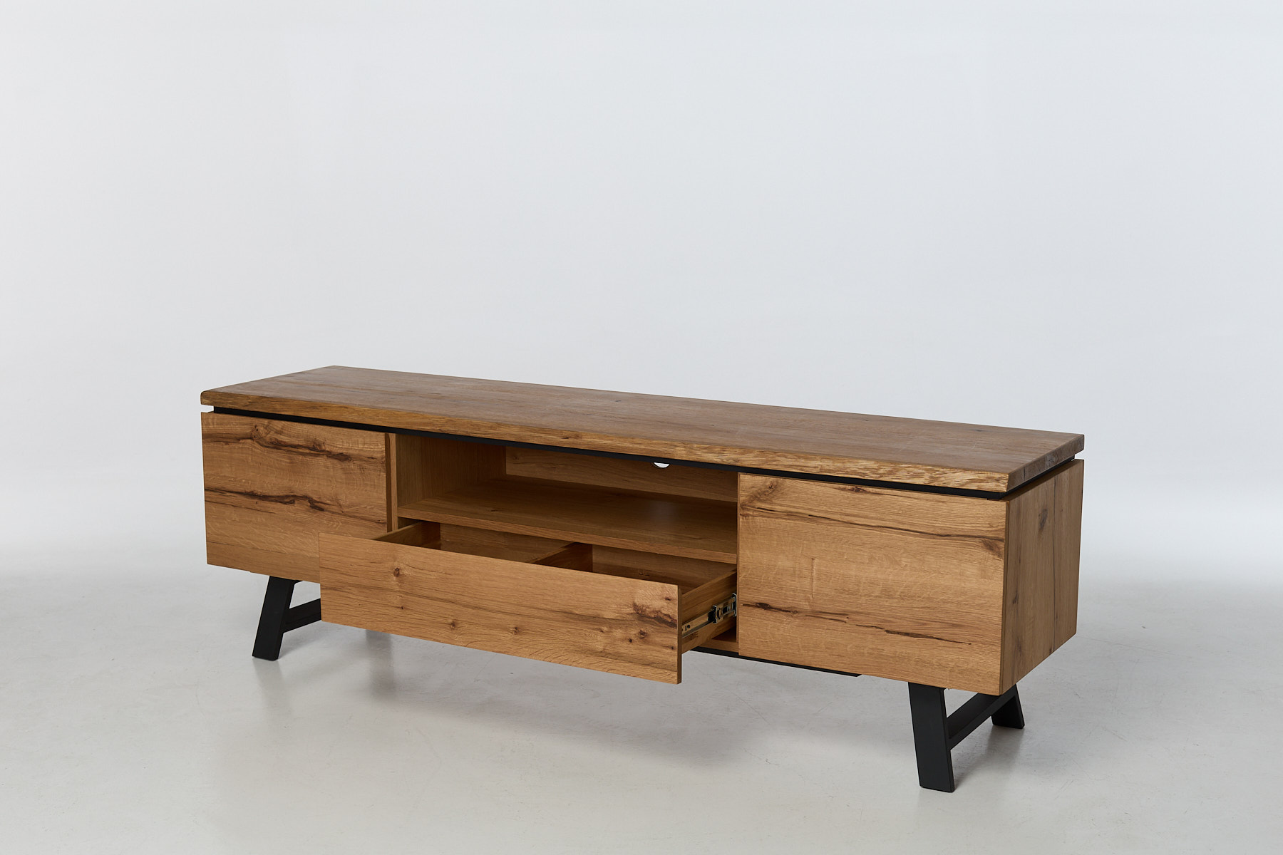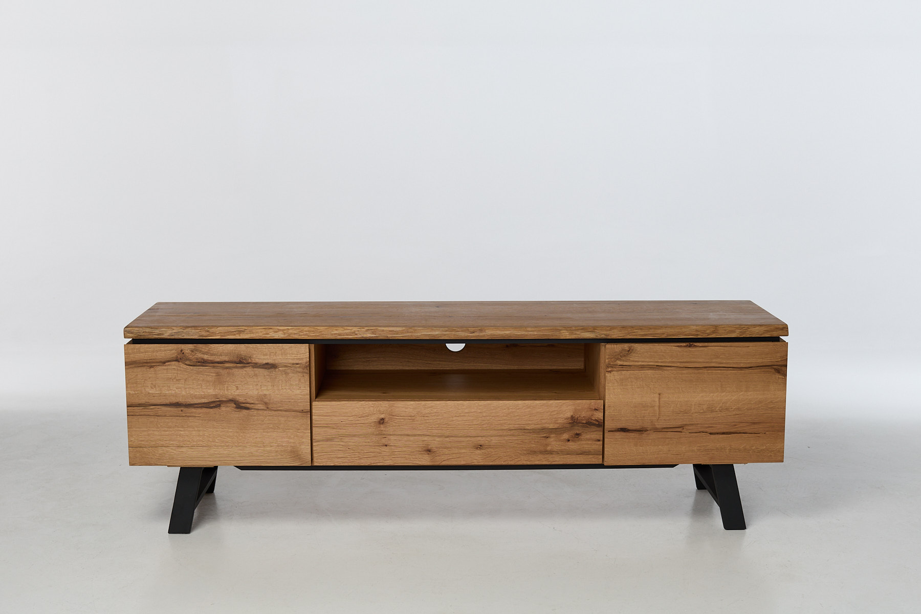 Alder - 1.8m TV Unit with Live Edge Solid Oak Top & Black Legs