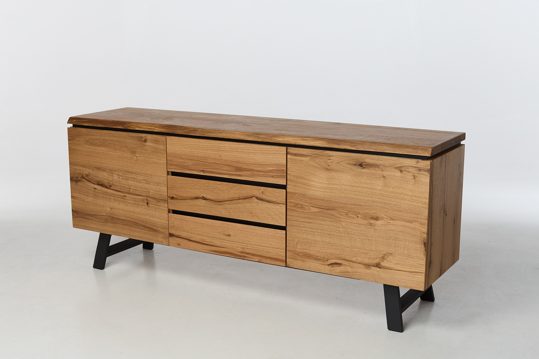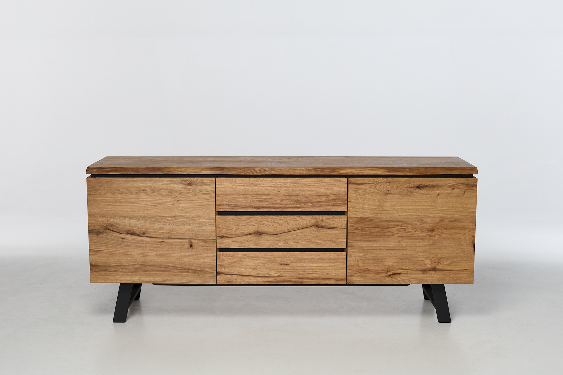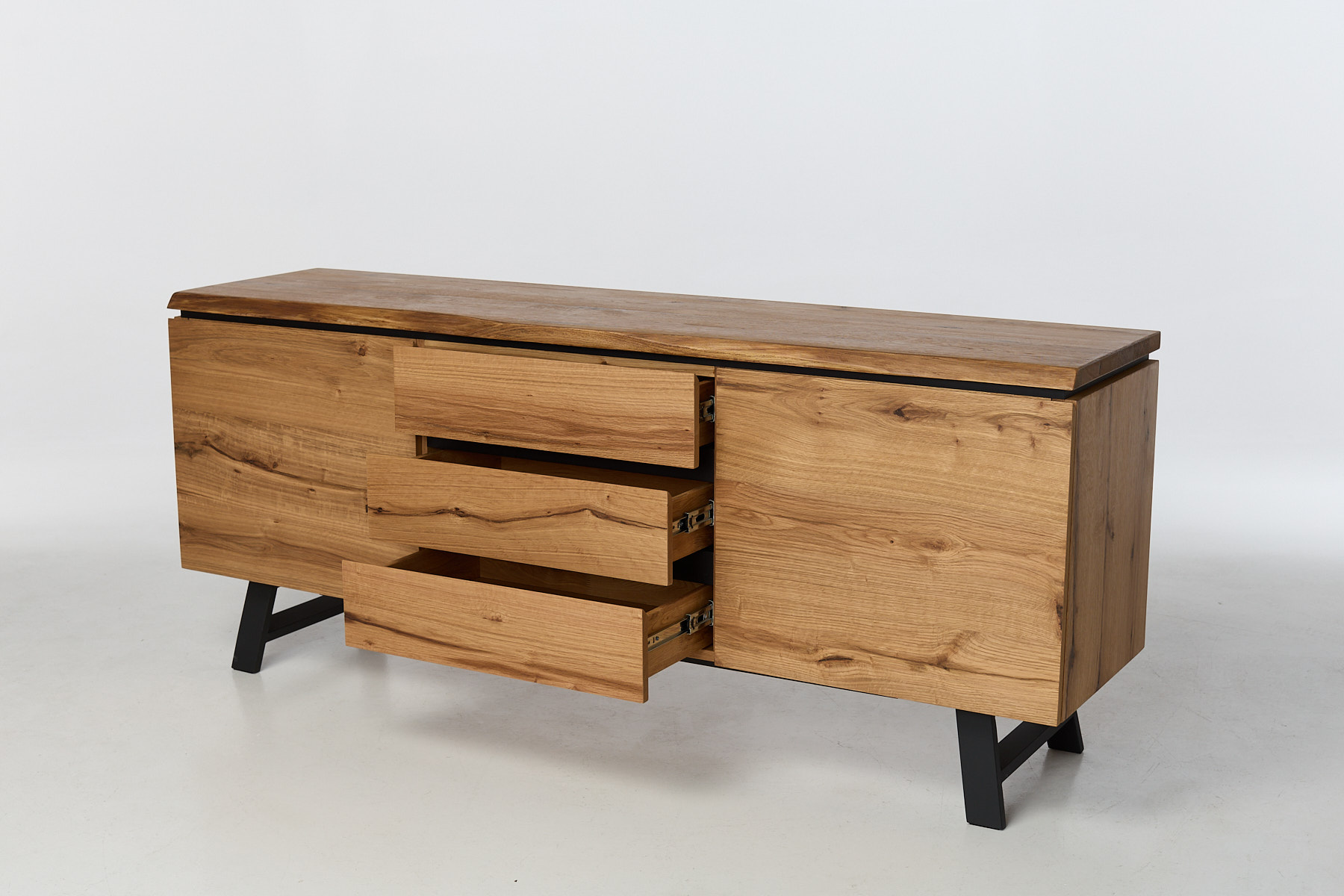 2 Door 3 Drawer Sideboard with Live Edge Solid Oak Top & Black Legs