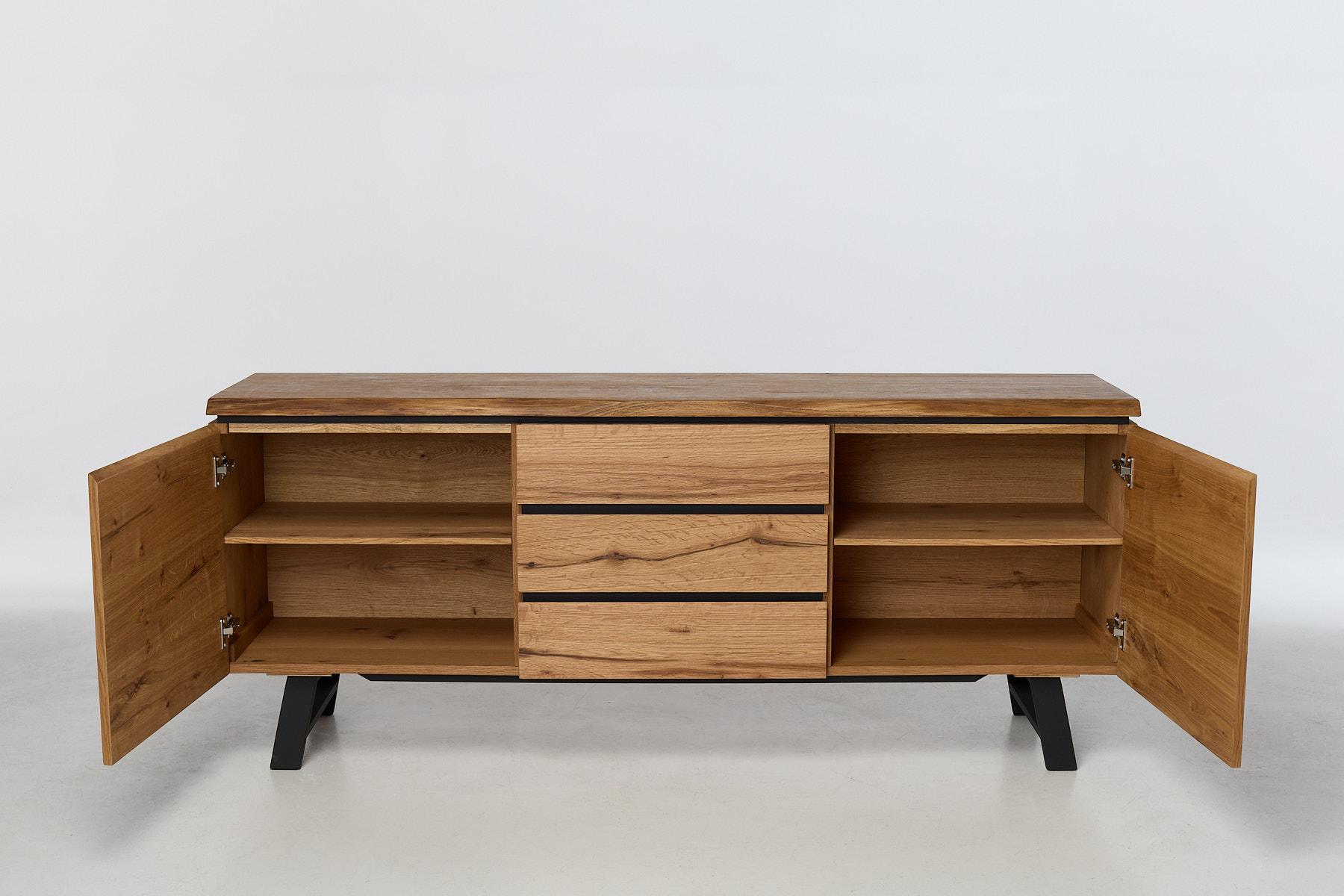 Alder - 2 Door 3 Drawer Sideboard with Live Edge Solid Oak Top & Black Legs