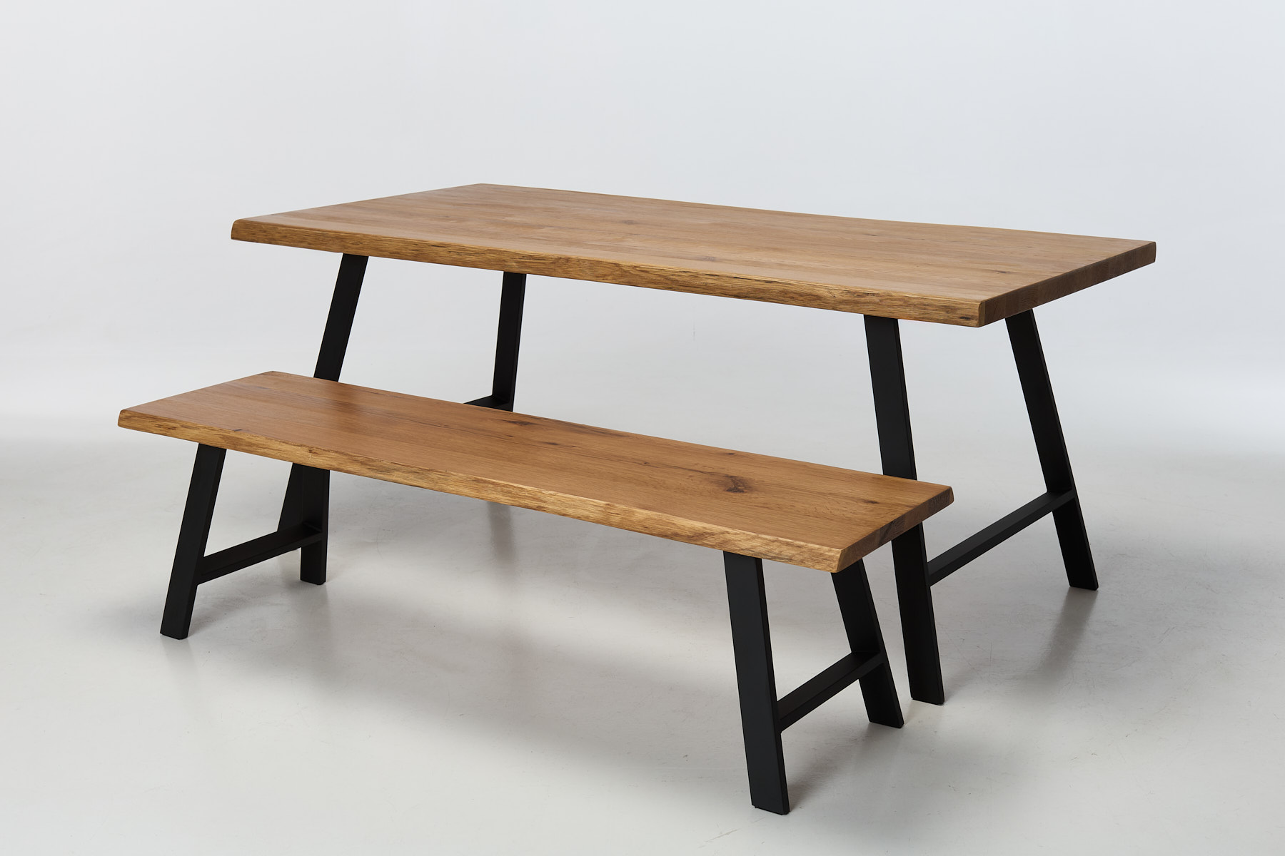 Alder Table & Bench Dining Set - Live Edge Solid Oak 1.8m Table & 1.6m Bench with Black Legs