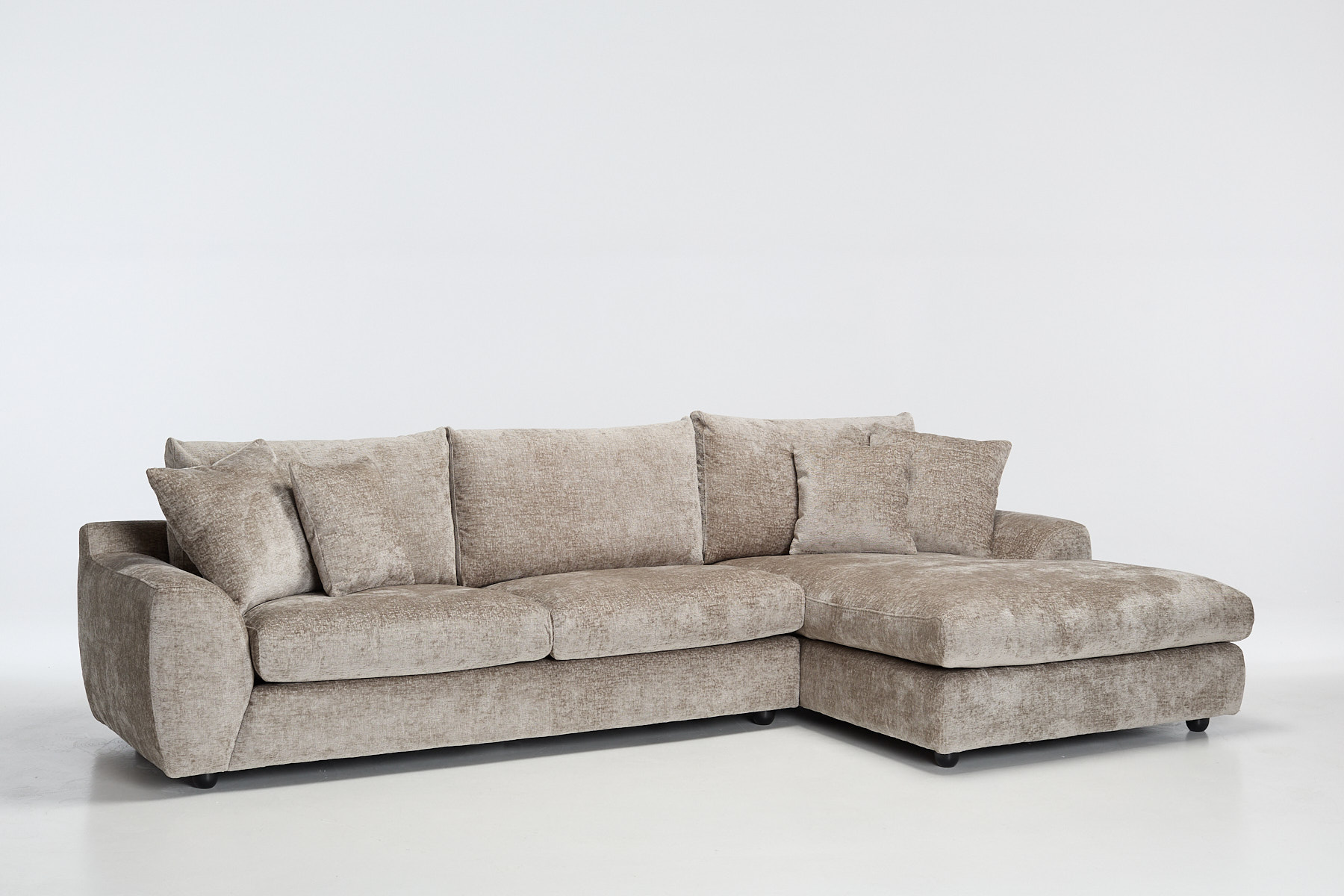 Arizona - Modern L Shaped Corner Sofa with Right Hand Chaise, Stone Chenille