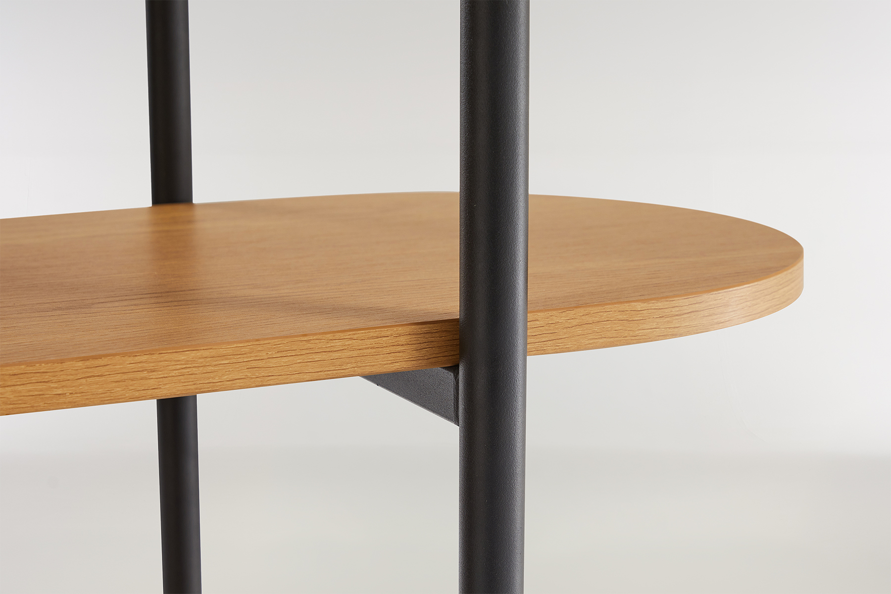 The first thing that hits you about the Bergen Bookshelf is the clever mix of that warm oak grain against the industrial black metal. It has a proper, architectural feel that brings a bit of soul to a room without blocking out all the light. We have kept the back completely open because nobody wants a massive wooden slab making their living space feel like a cramped corridor.