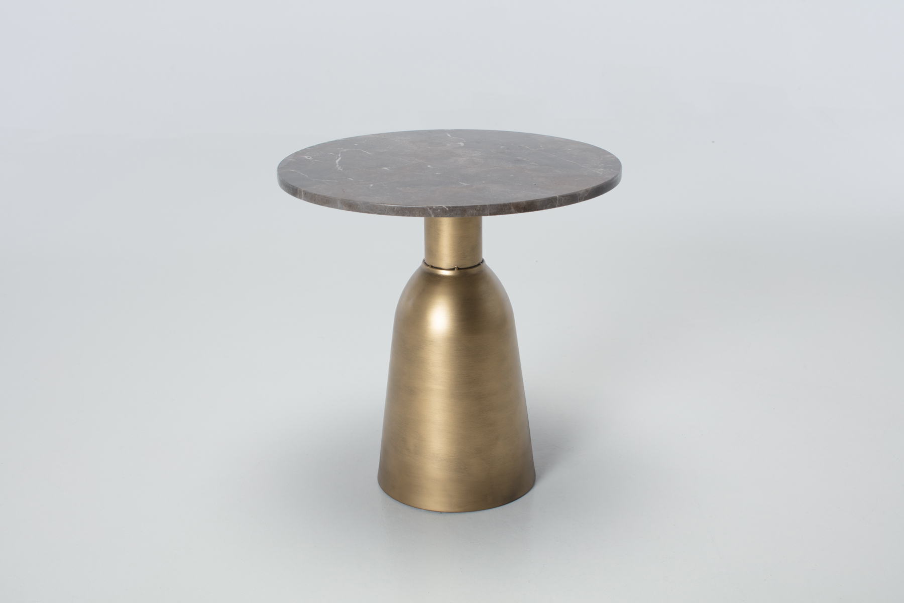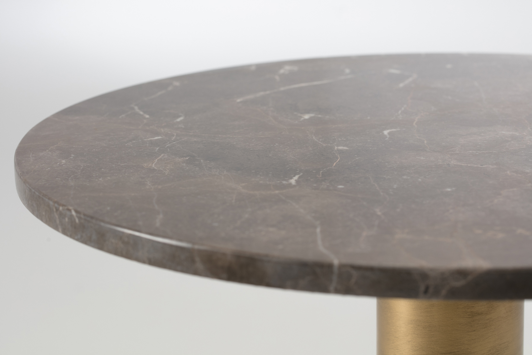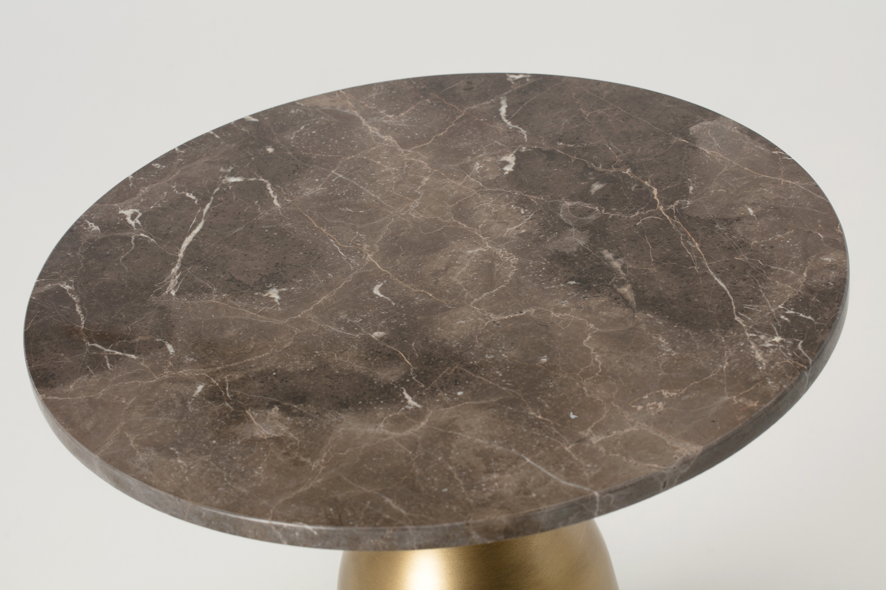 Side Table - Brown Marble & Brass Round Side Table, 50cm Medium Metal Pedestal