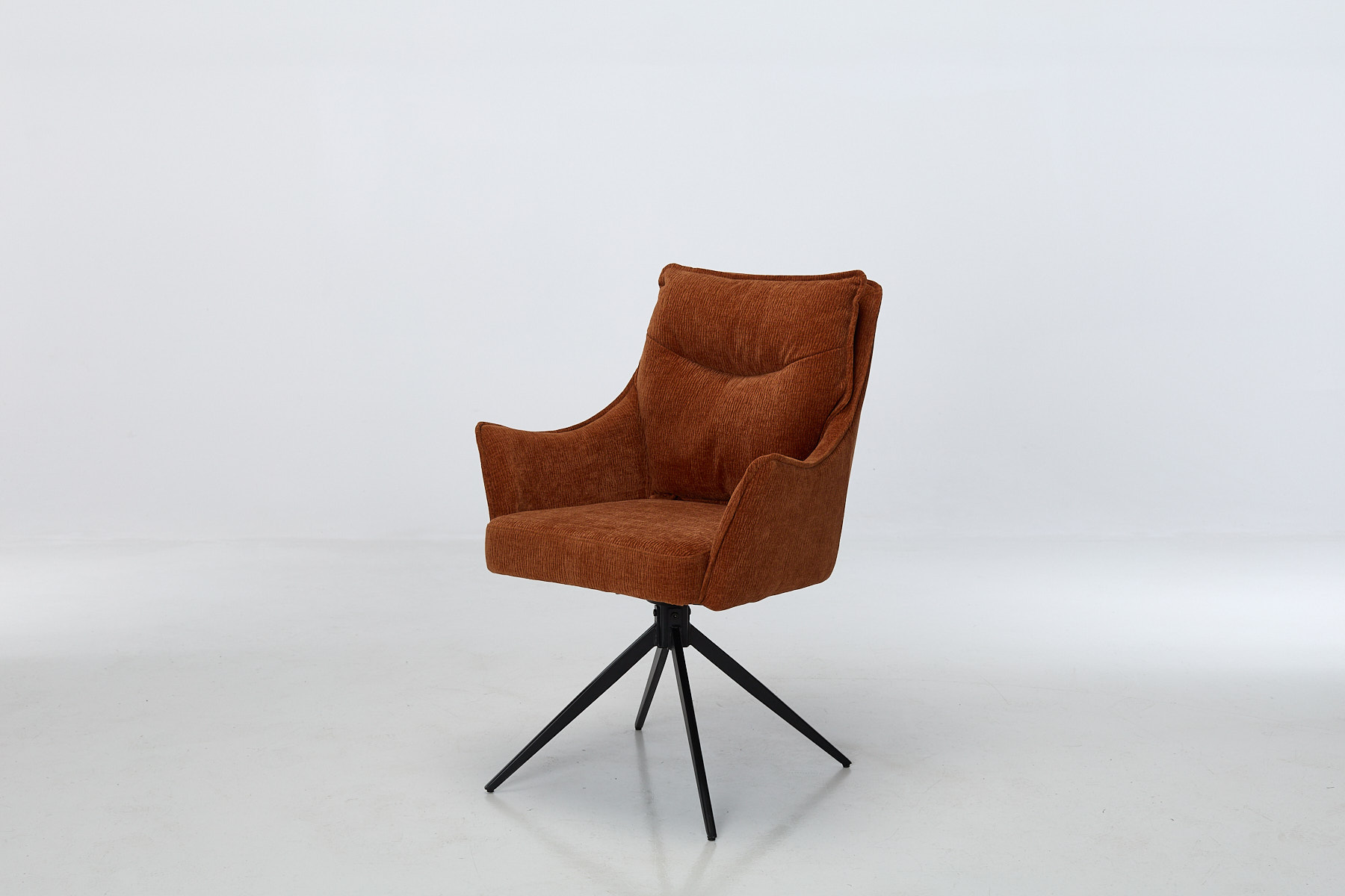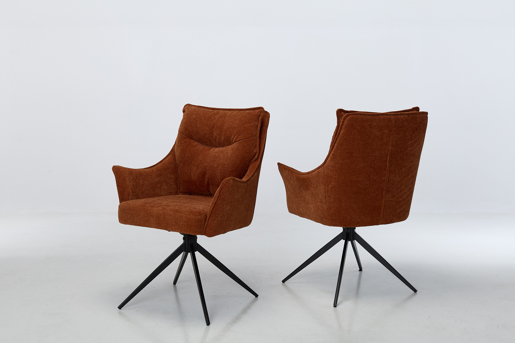 Our Moda collection builds for homes that live. Spaces that host, work, reset and repeat – without ever feeling temporary. Every piece is designed to hold up through daily use, look right in real light, and make the rest of the room feel sorted. Cali fits that logic perfectly. Six matching swivel chairs in burnt orange chenille, built to move, built to last, built to look like they belong. The colour adds warmth without shouting. The black metal base keeps things grounded. Moda doesn’t chase trends. It solves rooms. With clean designs, tactile fabrics and movement that makes sense, every piece earns its place. It’s furniture that works, hosts and holds up.