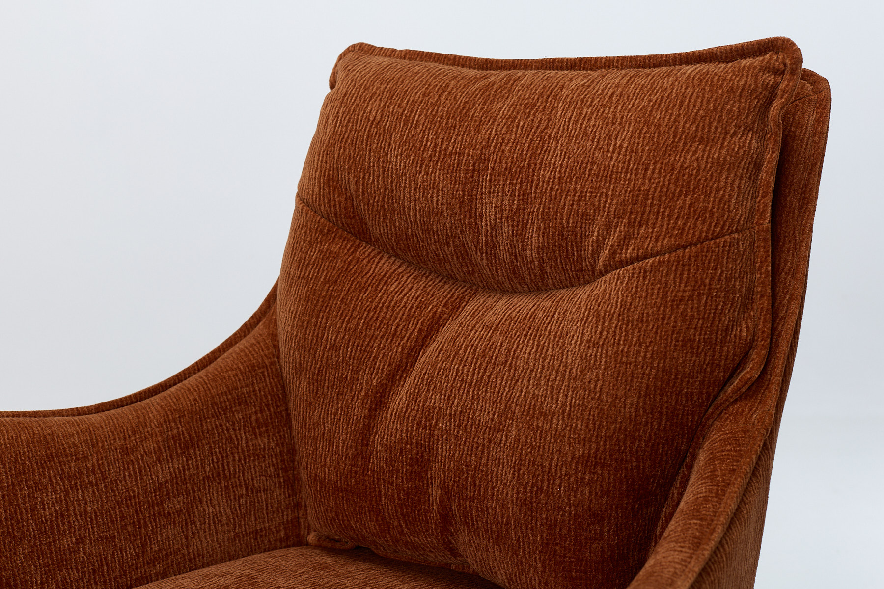 • Burnt Orange Woven Chenille Upholstery. Adds tactile warmth and visual clarity – soft enough for comfort, tough enough for daily life