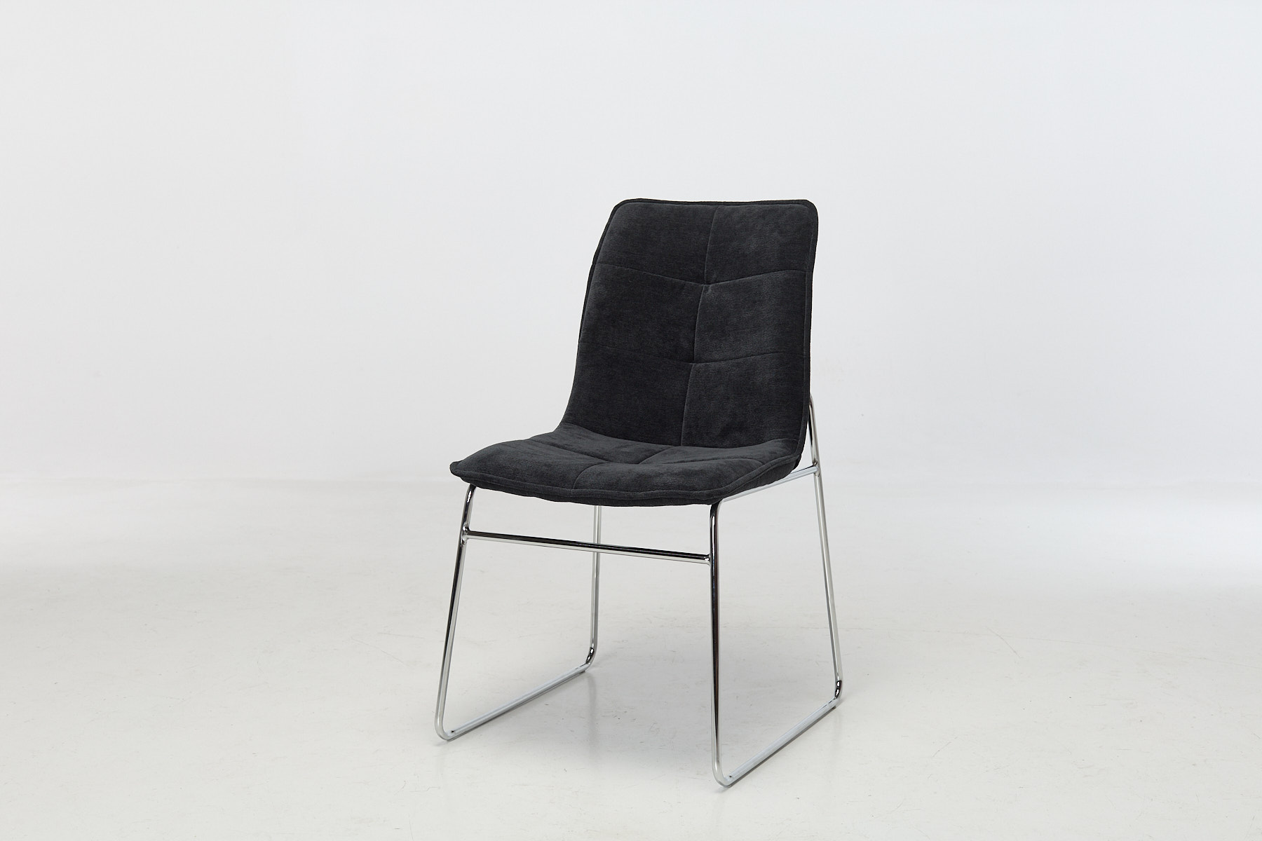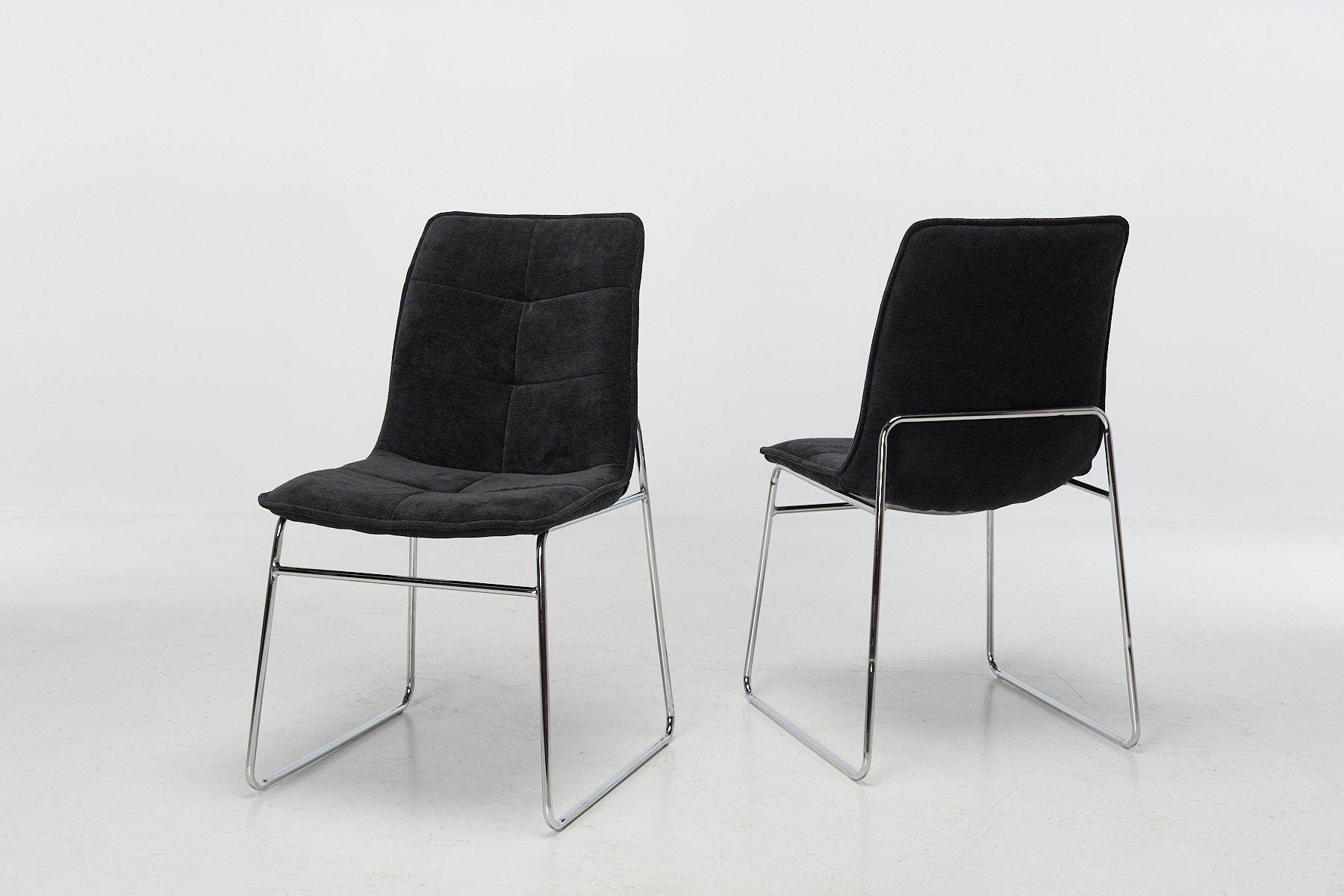 4 Modern Black Textured Chenille Dining Chairs with Chrome Sled Shaped Metal Base (Set of 4)