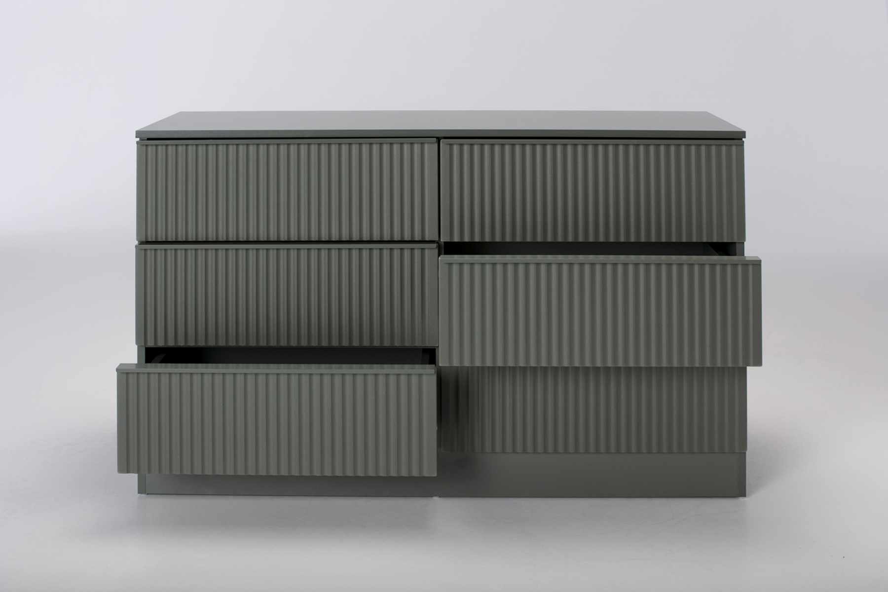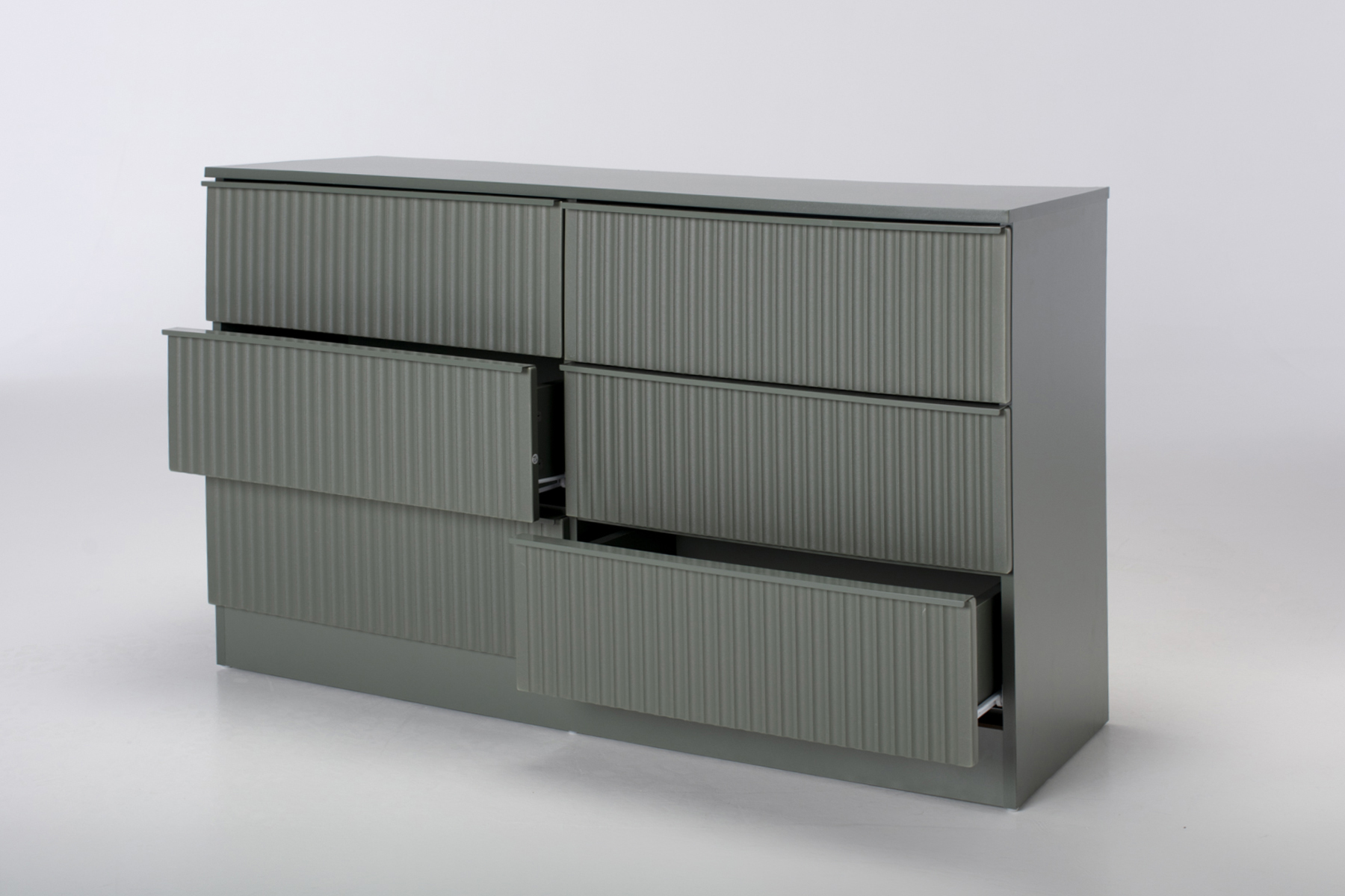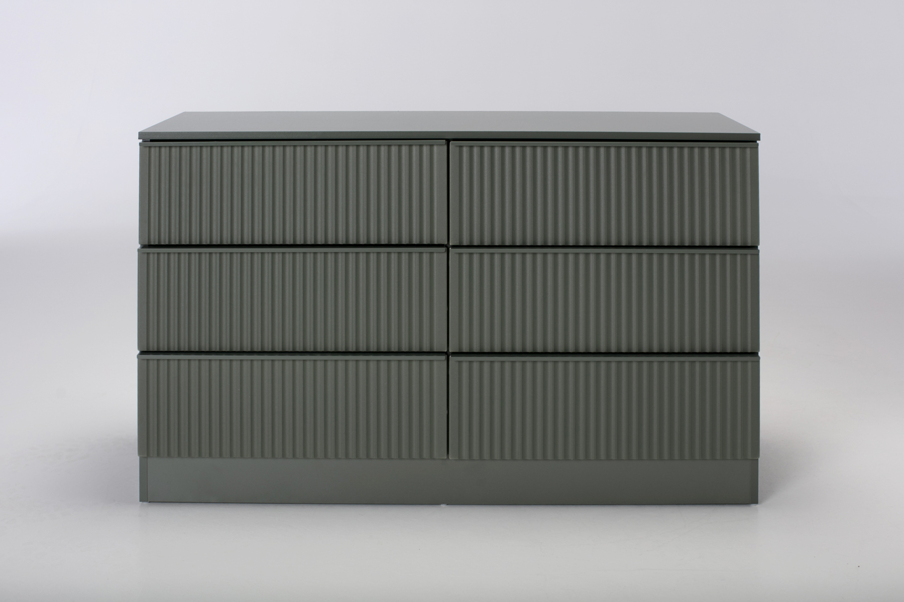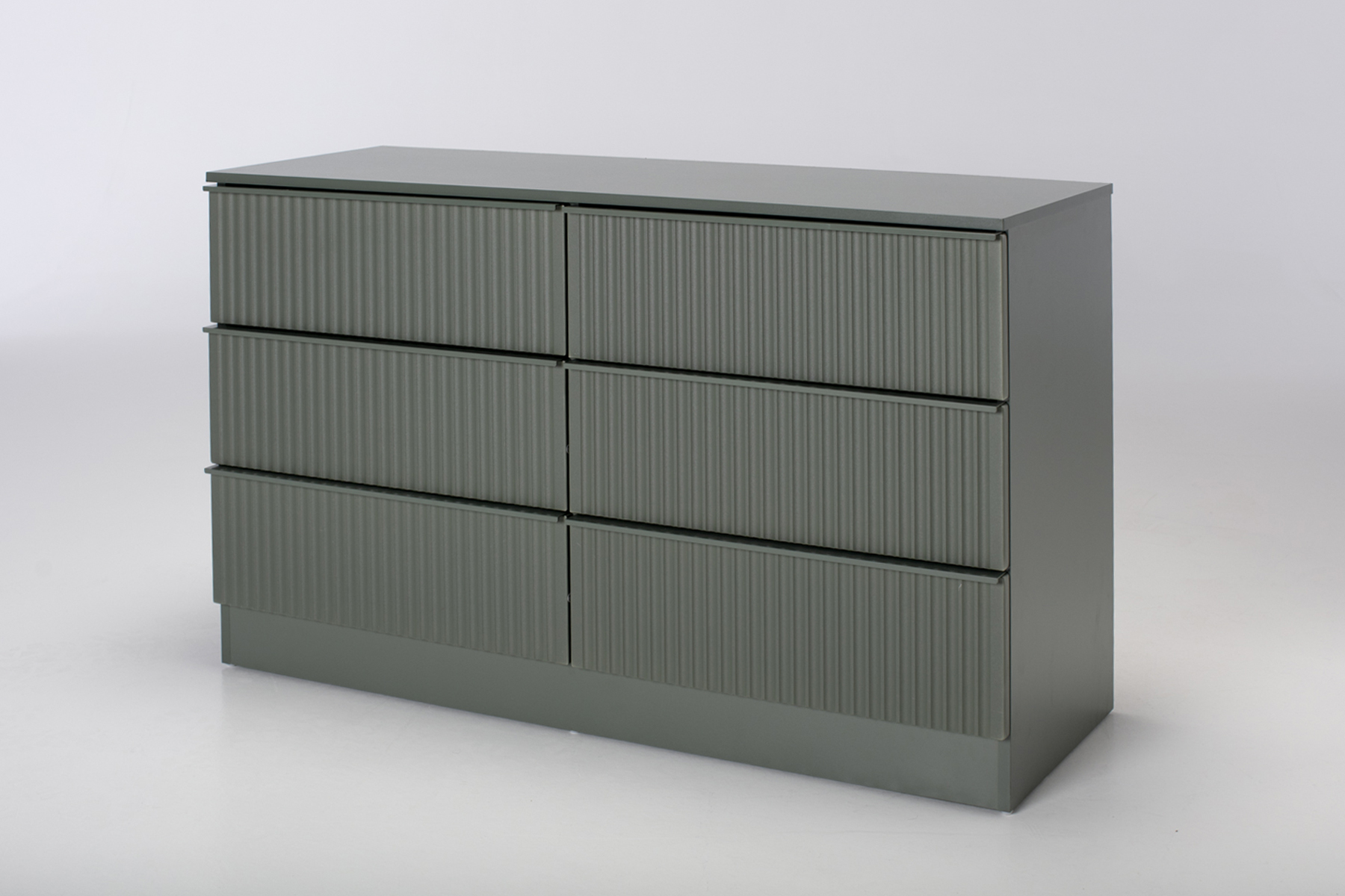 The real draw is the linear fluted front, which catches the light to create a rhythmic play of shadow across your furniture. Inside, six deep drawers provide massive capacity for everything from spare duvets to seasonal knits, keeping your environment clear of the usual clutter. Every drawer is handleless for a seamless, high‑end look that lets the bold colour and tactile ridges do the talking. It is a brilliant piece for visual weight balancing, filling a large space while maintaining a clean and peaceful atmosphere.