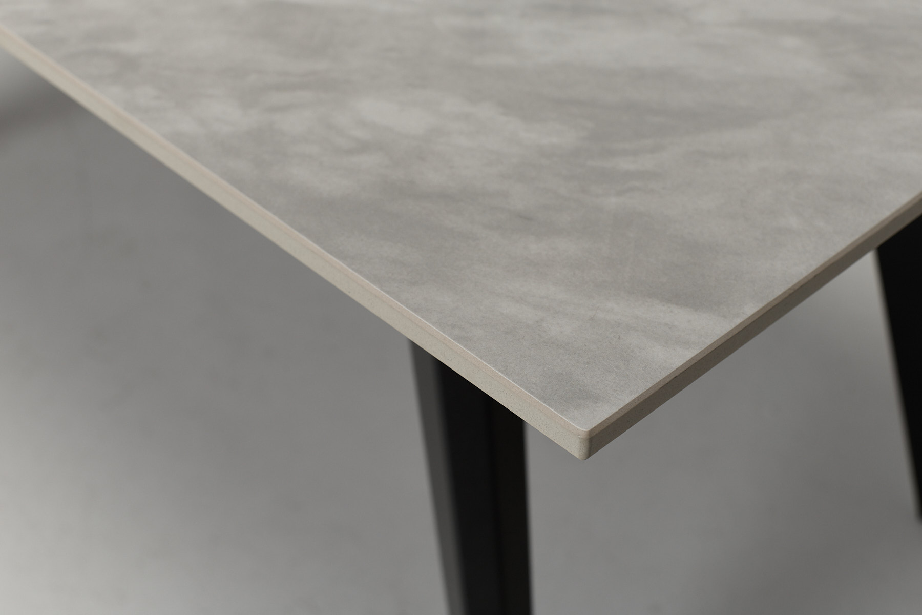 The Immi Coffee Table brings crisp edges and practical surface space to the heart of your layout. That Pacific Grey stone top has a soft, marbled pattern that shifts between pale grey and white – adding texture without bulk. It’s waterproof, scratch-resistant and built to handle heat and high light, so you won’t need to worry about fading or marks. The black metal legs taper gently and angle outward, giving the table a light, grounded feel that suits plush sofas, modular seating or open-plan layouts.