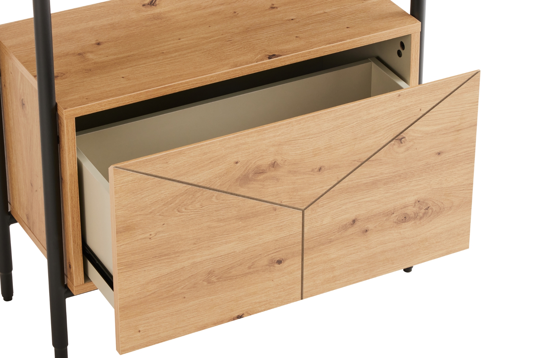 Luft Bookshelf - 1.7m Tall Oak Effect Bookshelf with 1 Cubby, 1 Drawer & Black Metal Frame