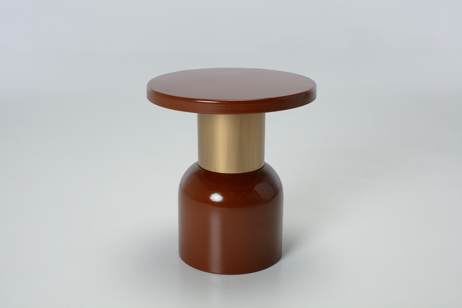 Metal Gloss Brown & Brass Round Side Table, 40cm Small Pedestal