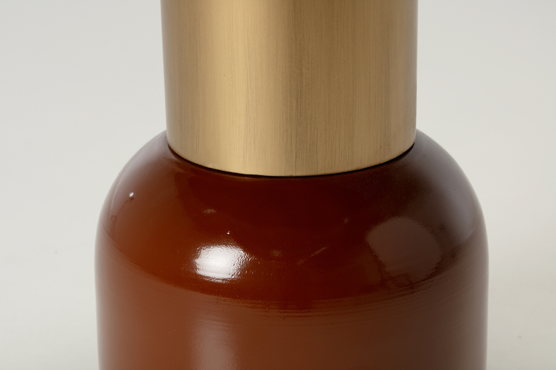 Side Table - Metal Gloss Brown & Brass Round Side Table, 40cm Small Pedestal