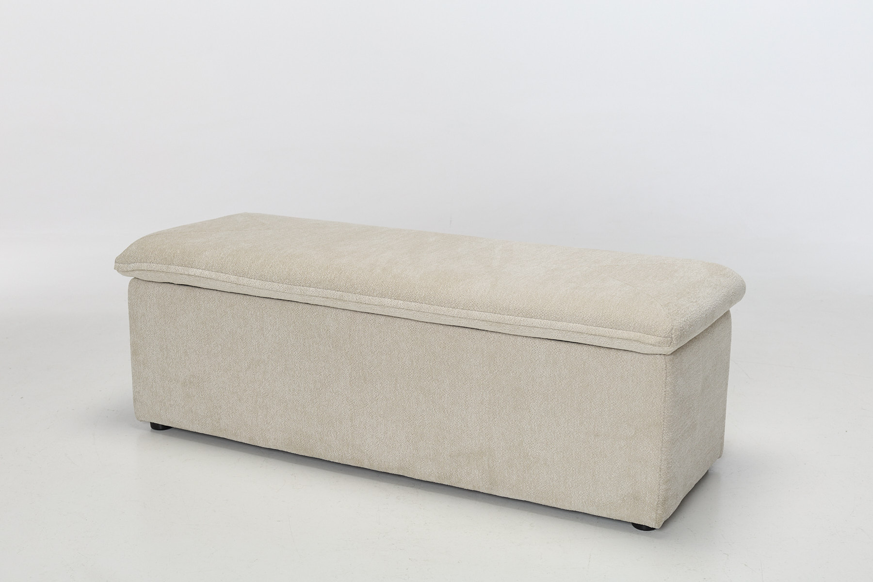 Luxury Upholstered Storage Ottoman, Fawn Soft Chenille Fabric