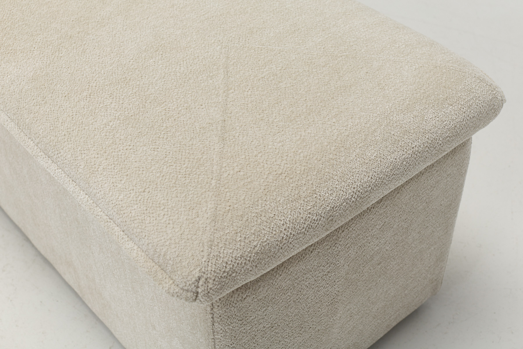 This ottoman bench is designed as a natural companion to the Nala bed range, echoing its geometric confidence in a smaller form. Upholstered in soft Fawn Chenille, the fabric feels smooth and velvety, with a low‑pile texture that’s soft to the touch. The lift‑up lid keeps its clean rectangular shape intact when closed, so it looks sharp whether you’re using it for seating or storage. Place it at the foot of the bed for seamless continuity, or let it stand alone as a chic accent in a dressing area.