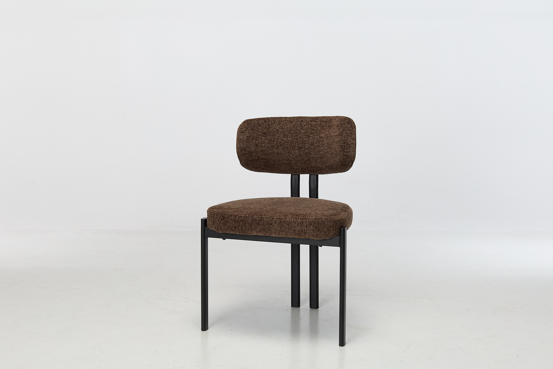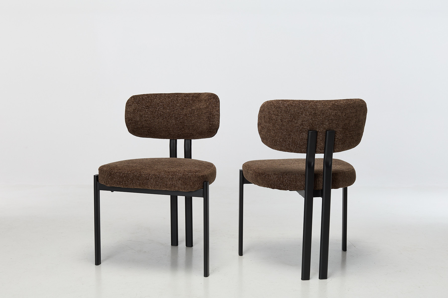 The Nori Dining Chairs feature a clean, usable design that’s instantly welcoming. The seats are wrapped in Mocha Chenille Fabric, chosen for its warm colour and its ability to handle the knocks of a busy home. The frame is supported by strong black metal legs, which add contrast and keep the layout feeling sorted. The curved backrest is shaped to support longer sits. Whether it’s a slow breakfast, a proper dinner or working from the table. It fits especially well around round dining tables, helping the space feel pulled together without trying too hard.