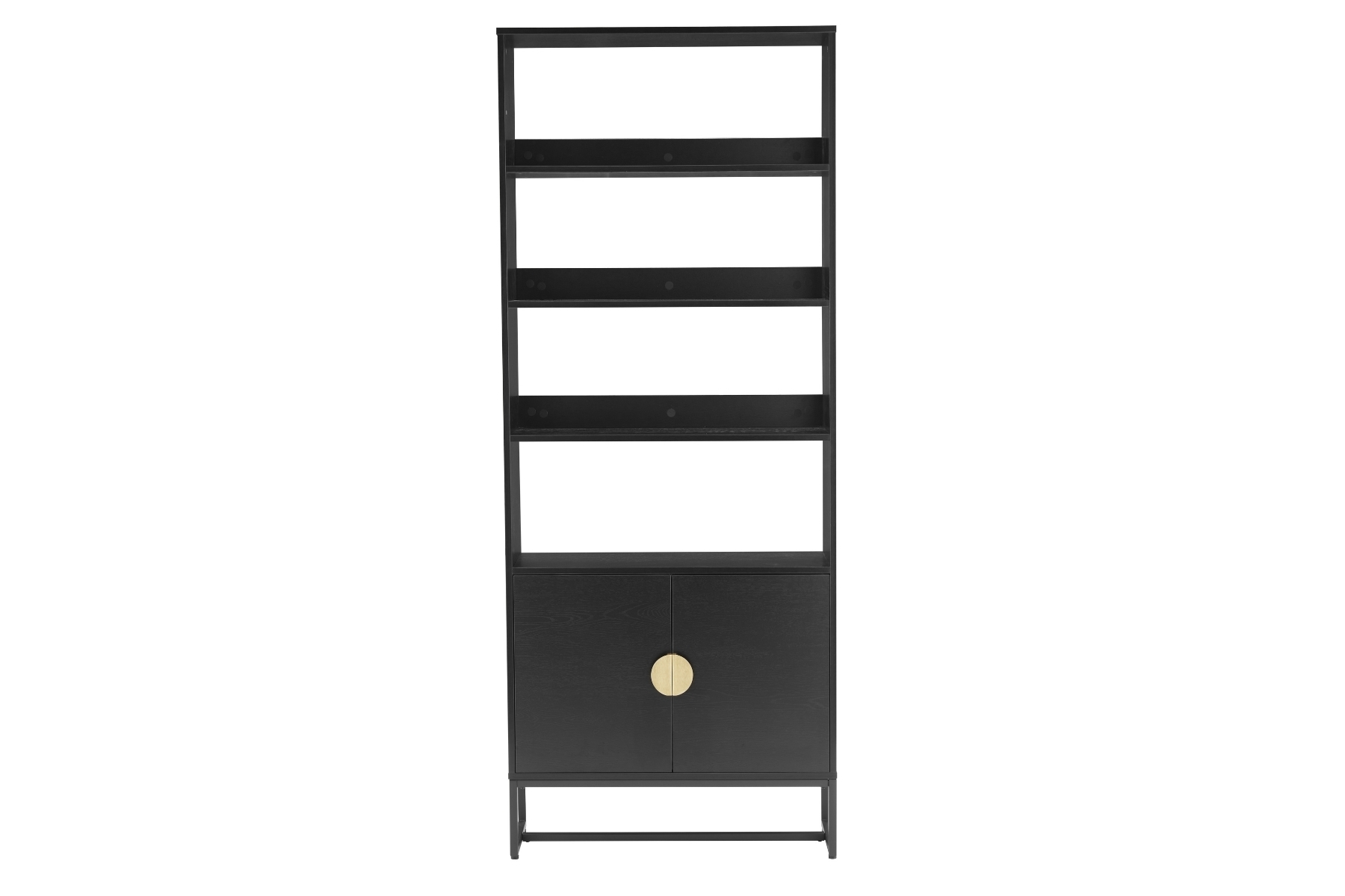 Oslo - Black 2m Tall Bookshelf with 2 Door Cabinet and Gold Handles