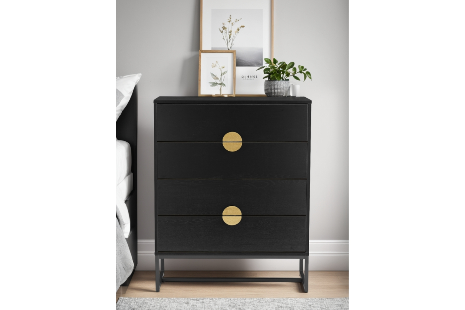Oslo - Black 4 Drawer Chest with Gold Handles