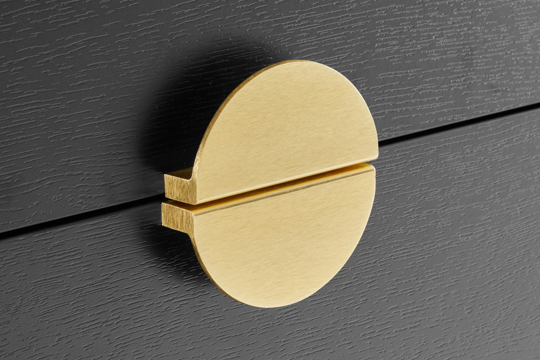 The black finish is rich and grounded, with a subtle wood grain that adds texture without shouting. Slim black metal legs lift the whole piece off the floor, keeping things light and easy to place. It’s wide enough to store properly, tall enough to stand out and compact enough to suit tighter spaces. The gold circular handles? They’re not just for show. They break up the black with a hit of brightness and feel great in your hand.
