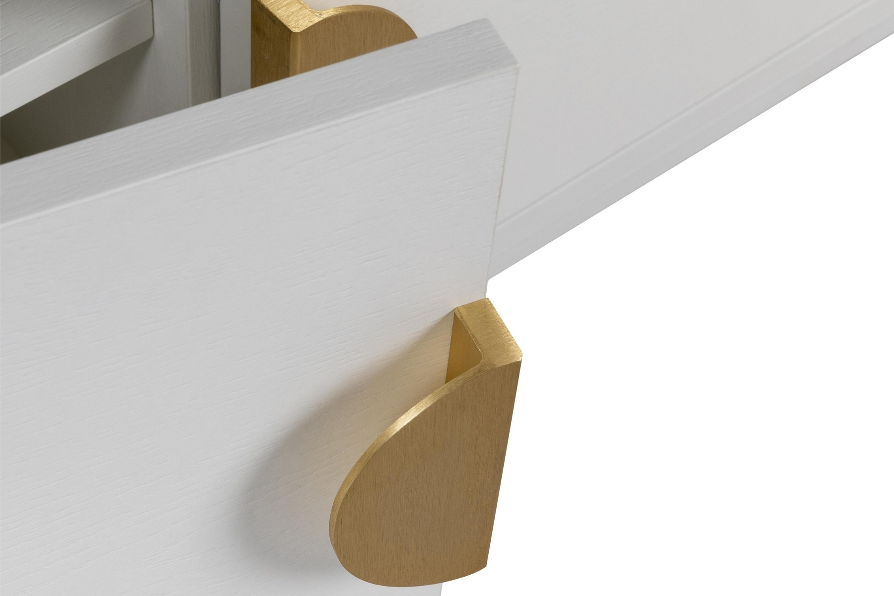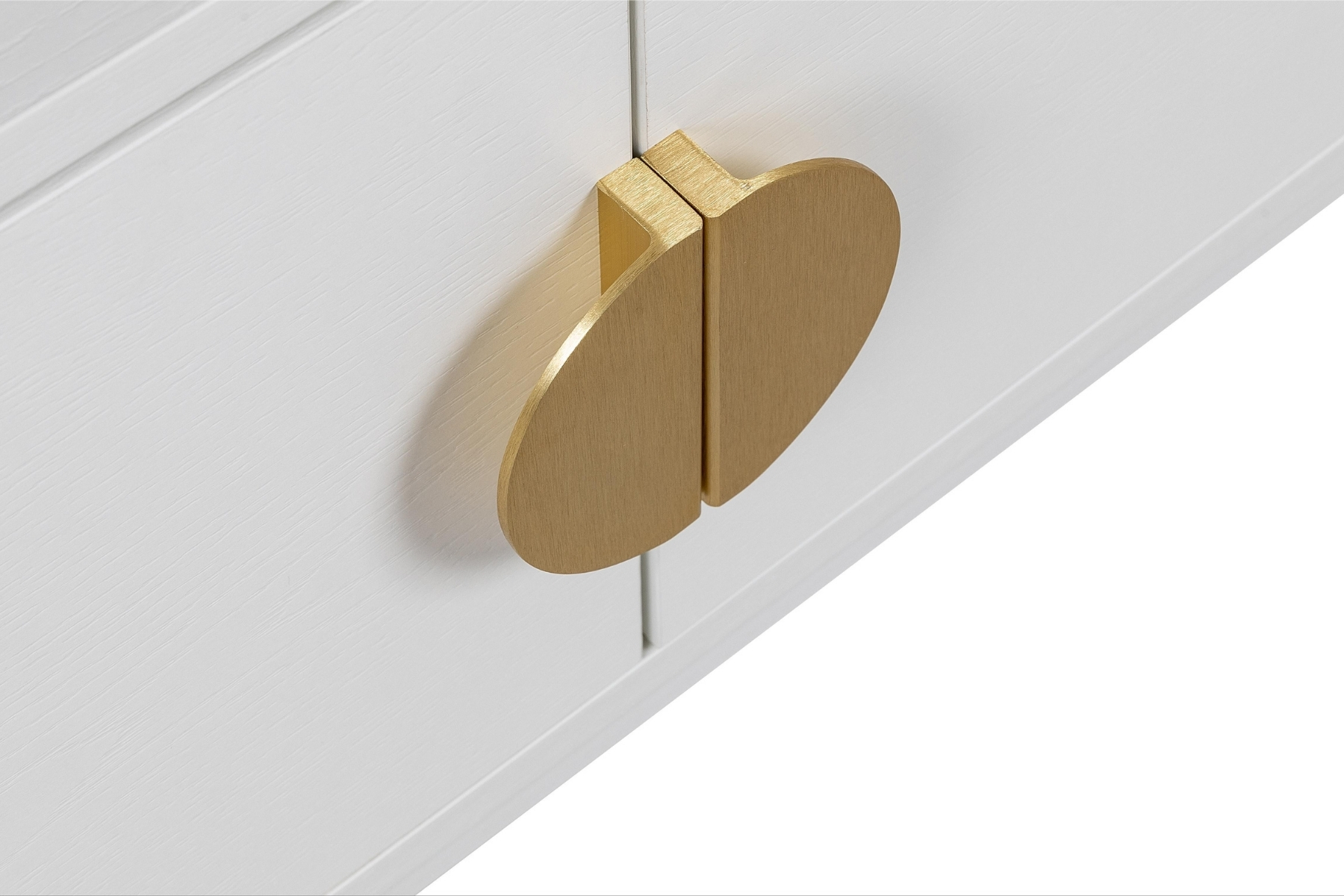 The brushed gold-style handles split across the cabinet doors, adding a jewellery-like detail that elevates the whole piece. It’s a small moment of luxury in a unit that’s designed to work hard. Whether you’re styling a bright open-plan space or a quiet corner, Oslo fits right in. Clean, confident and built for real life.