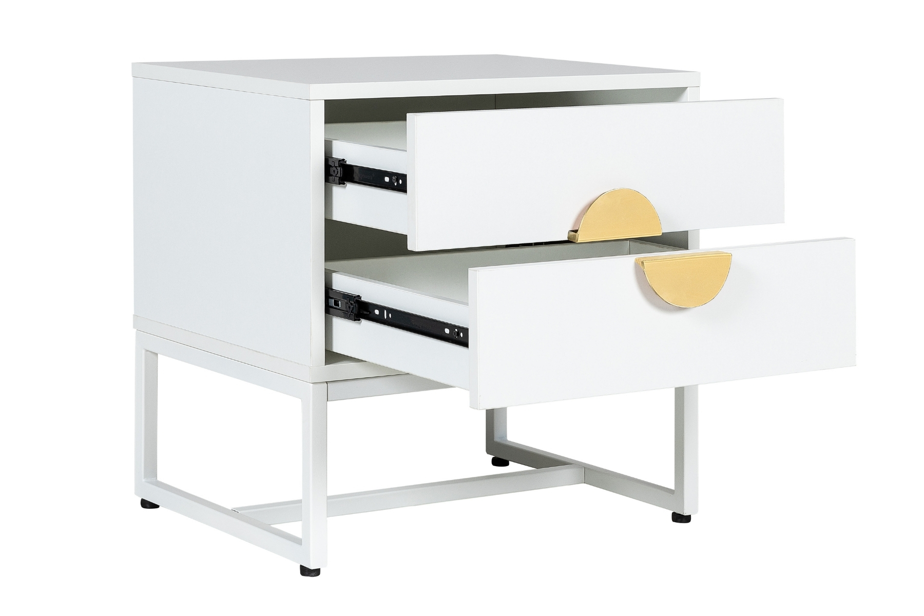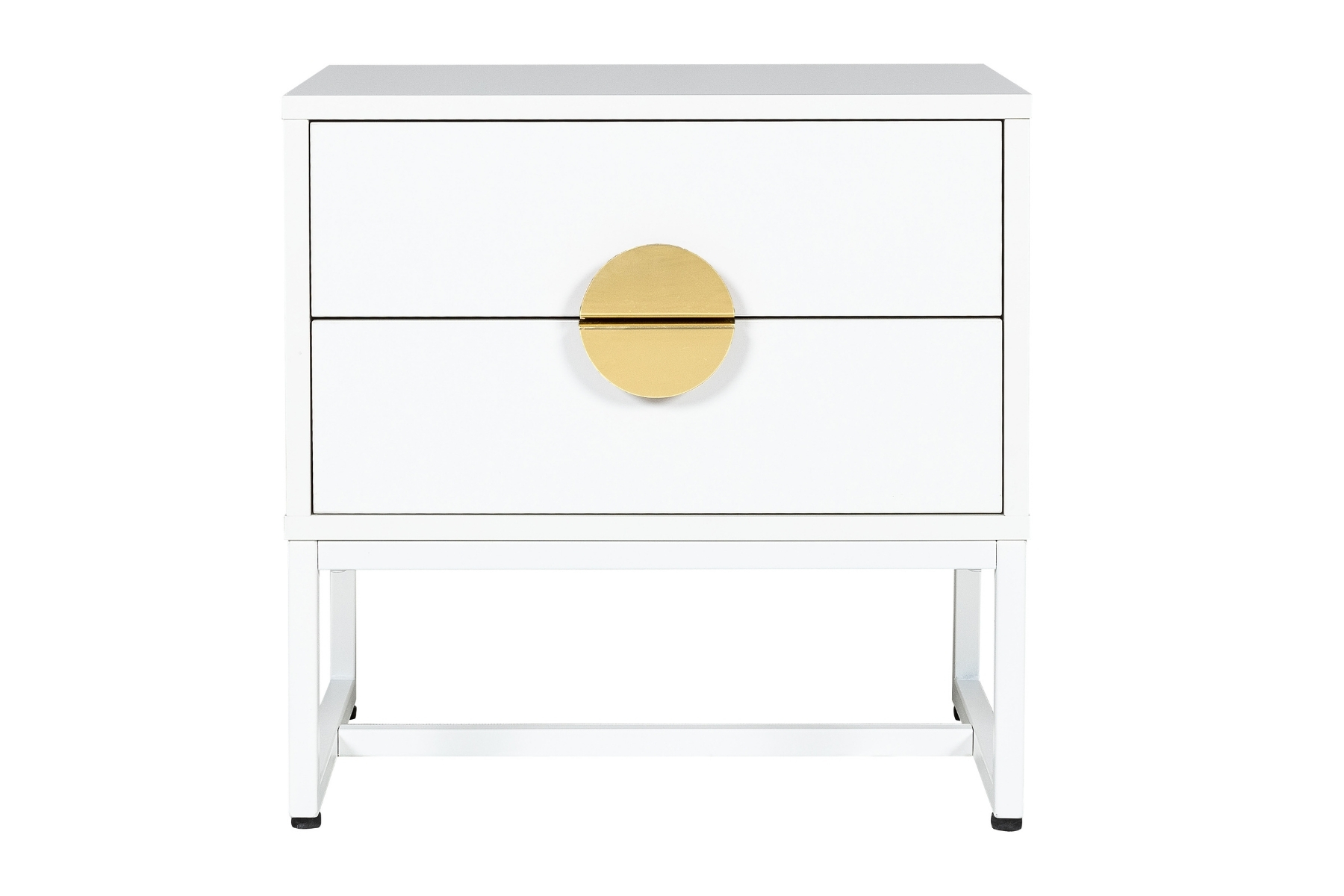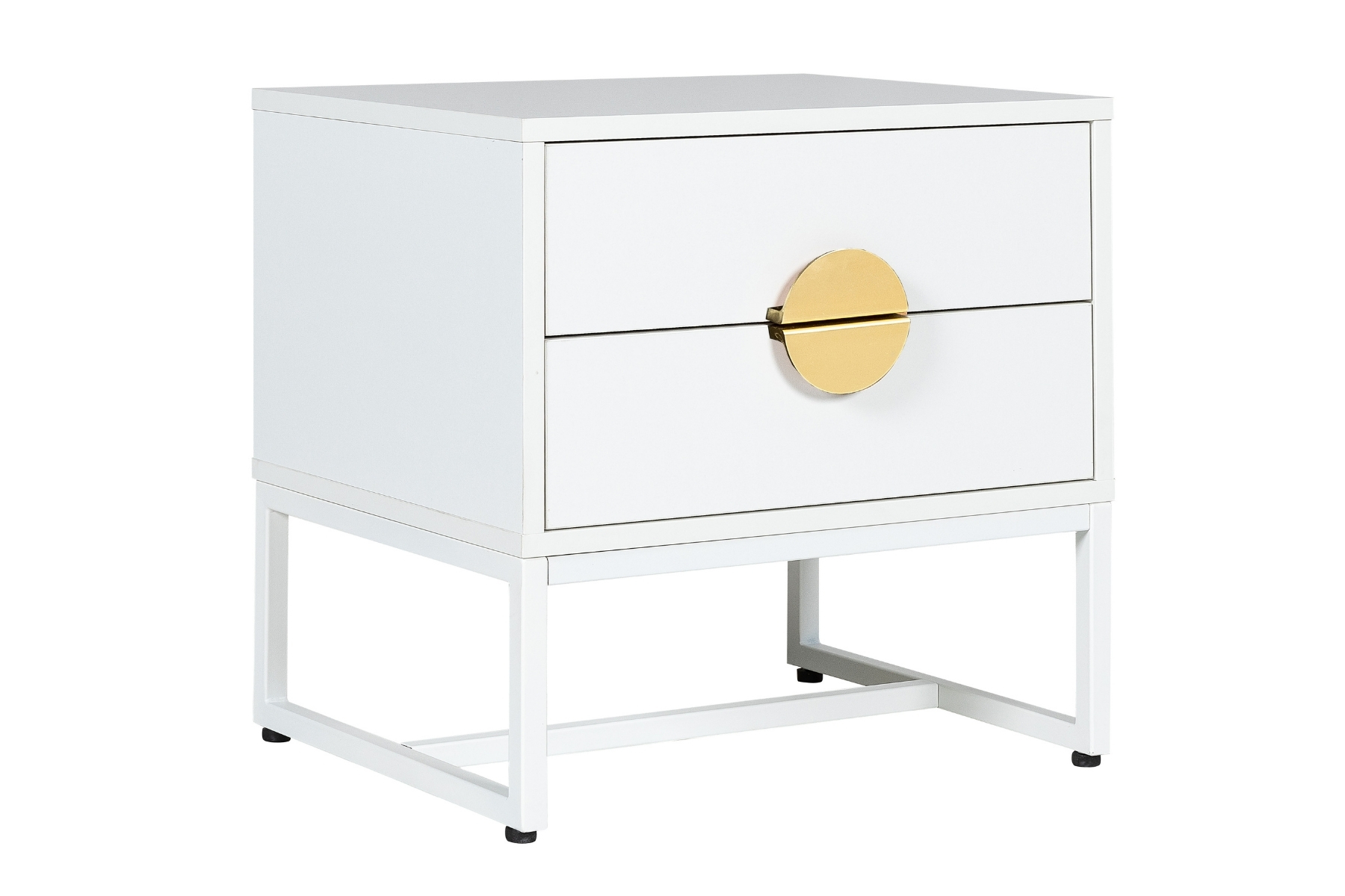 Oslo Bedside Table - White 2 Drawer Bedside Table with Gold Handles