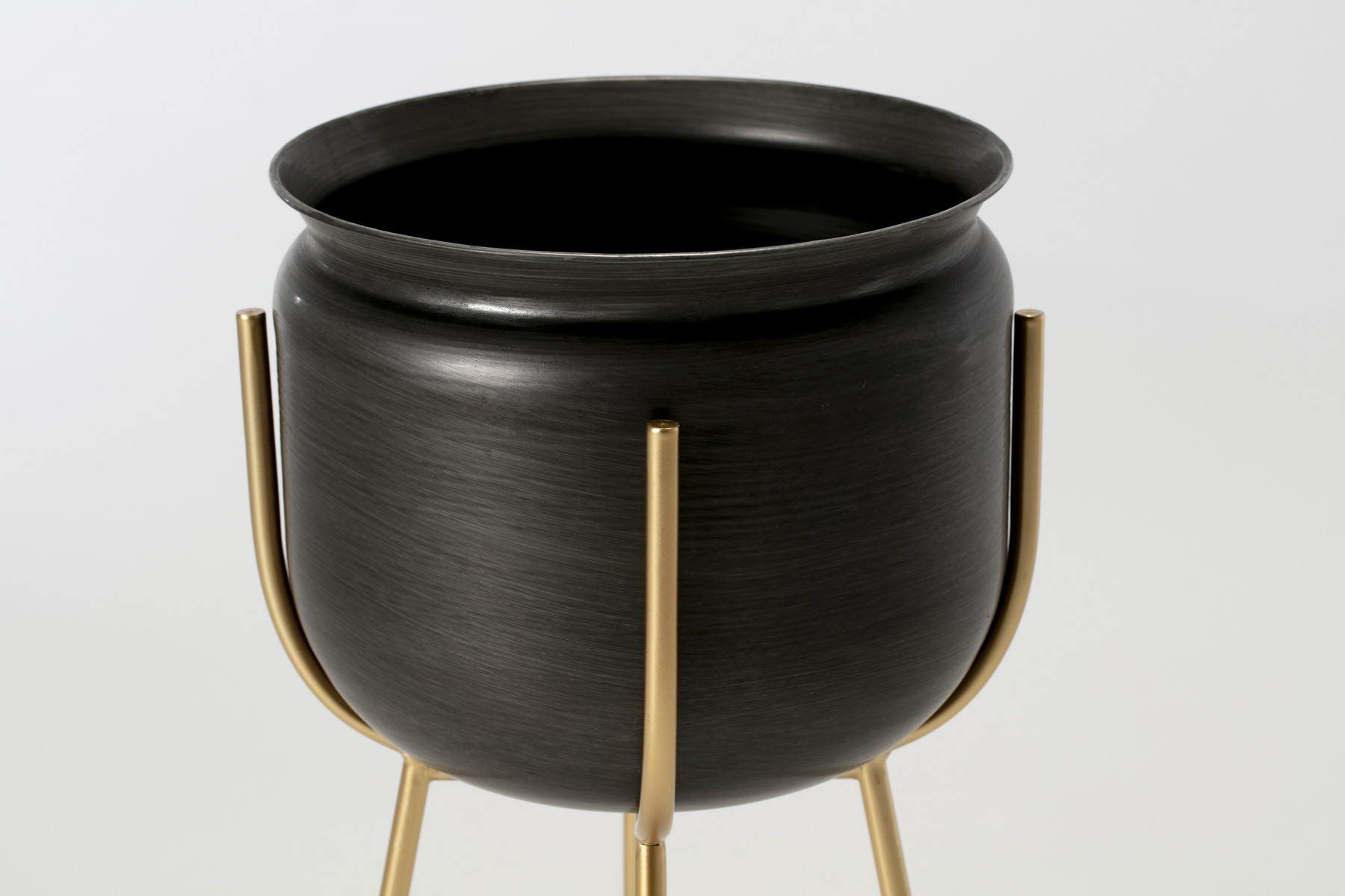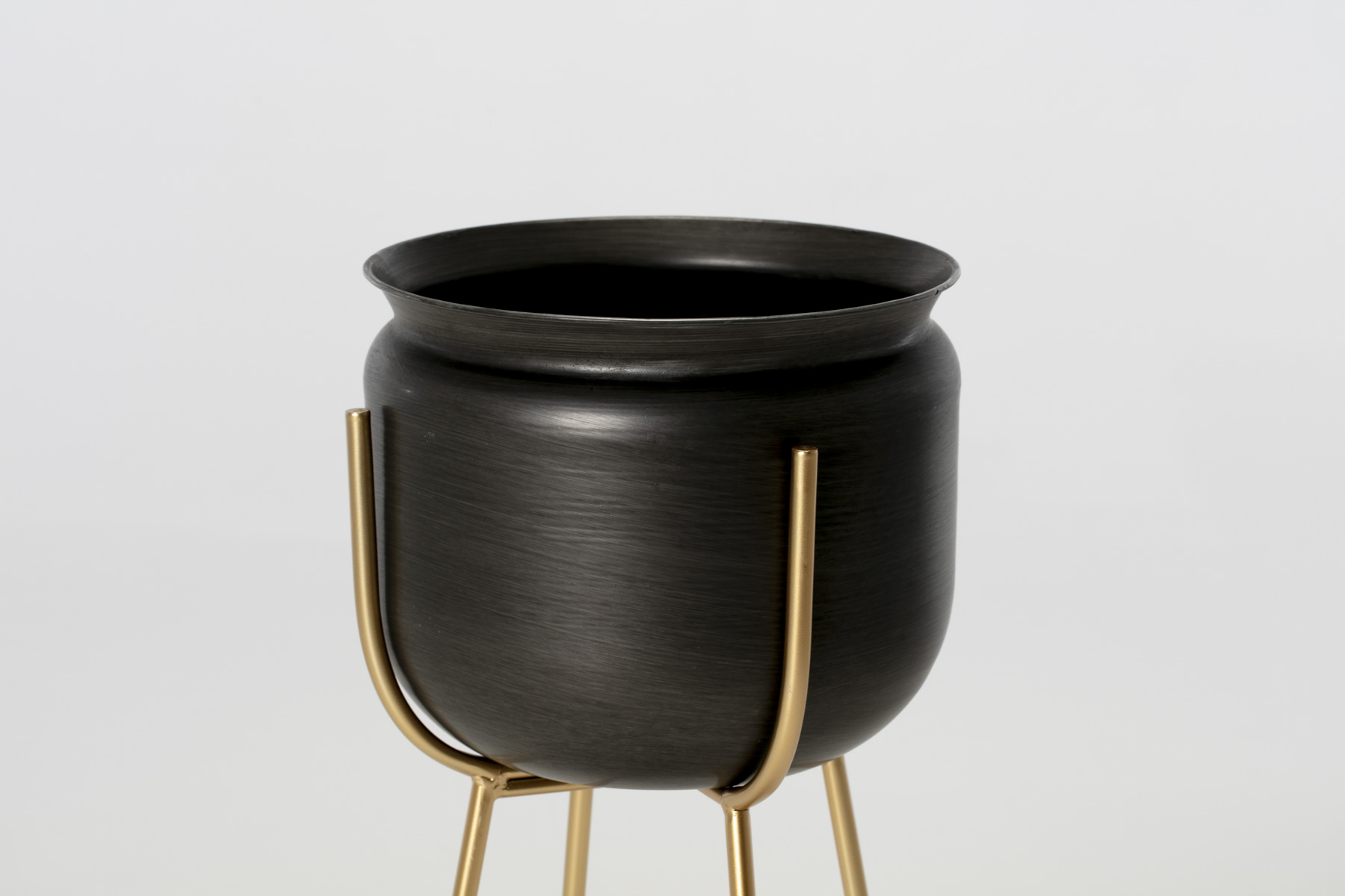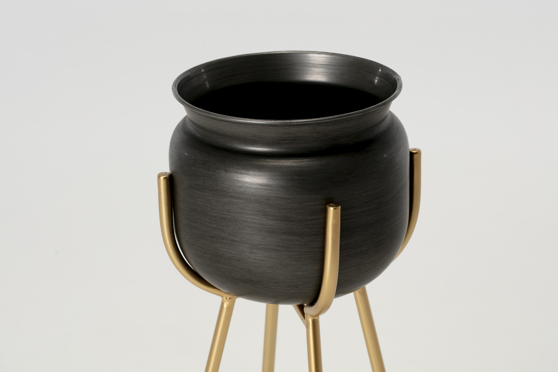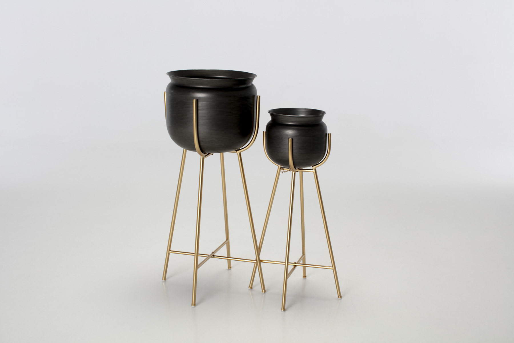 Plant Stands - Set of 2 Black Plant Pots on Brass Stands (Large & Small)