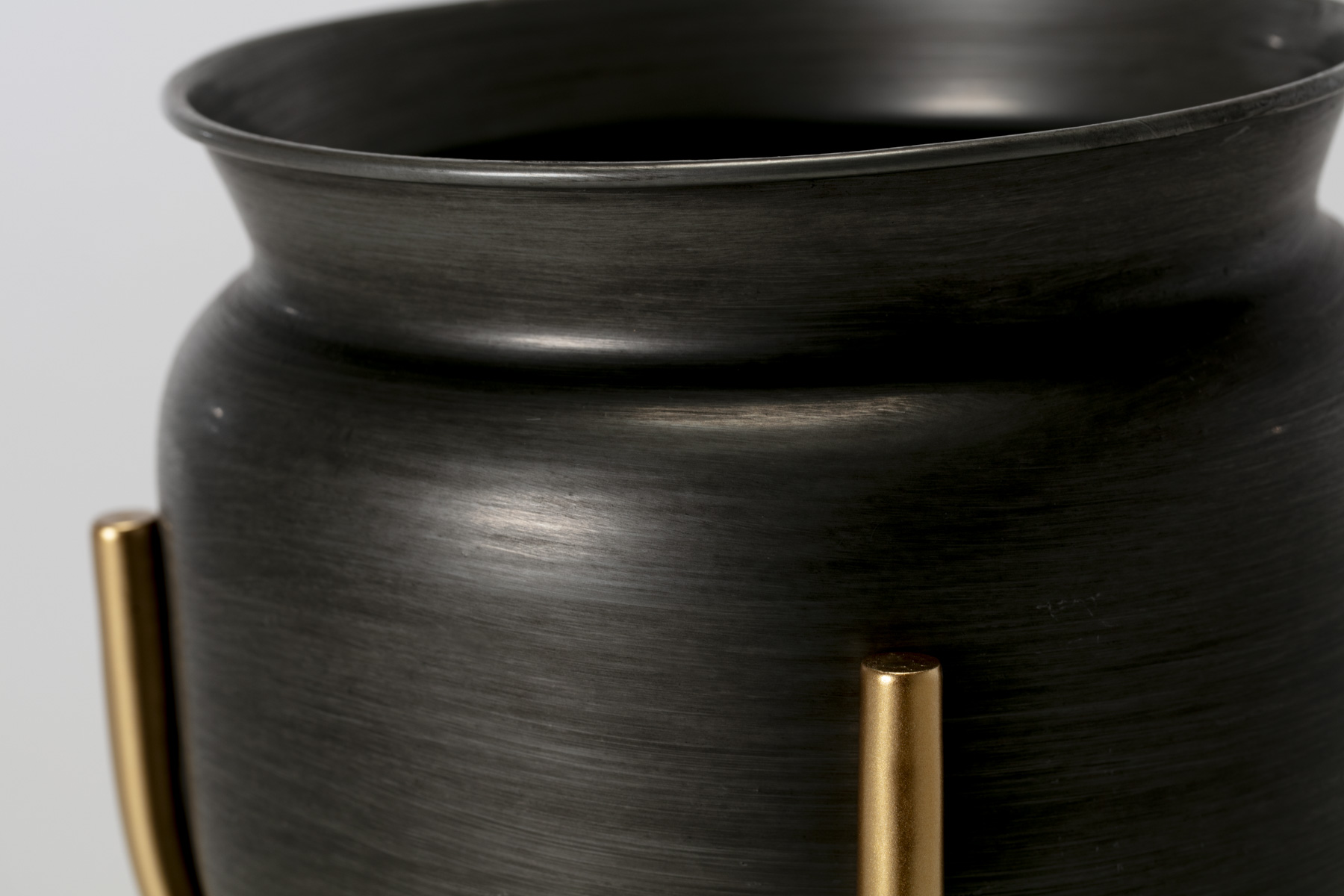 Set of 2 Black Plant Pots on Brass Stands (Large & Small)