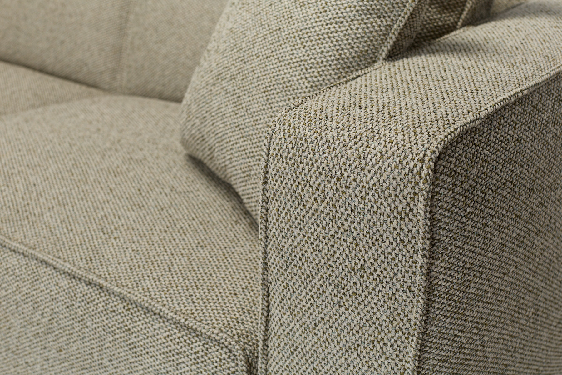 • Upholstered in Moss Green Luxury Woven Fabric for rich texture and a grounded, earthy feel