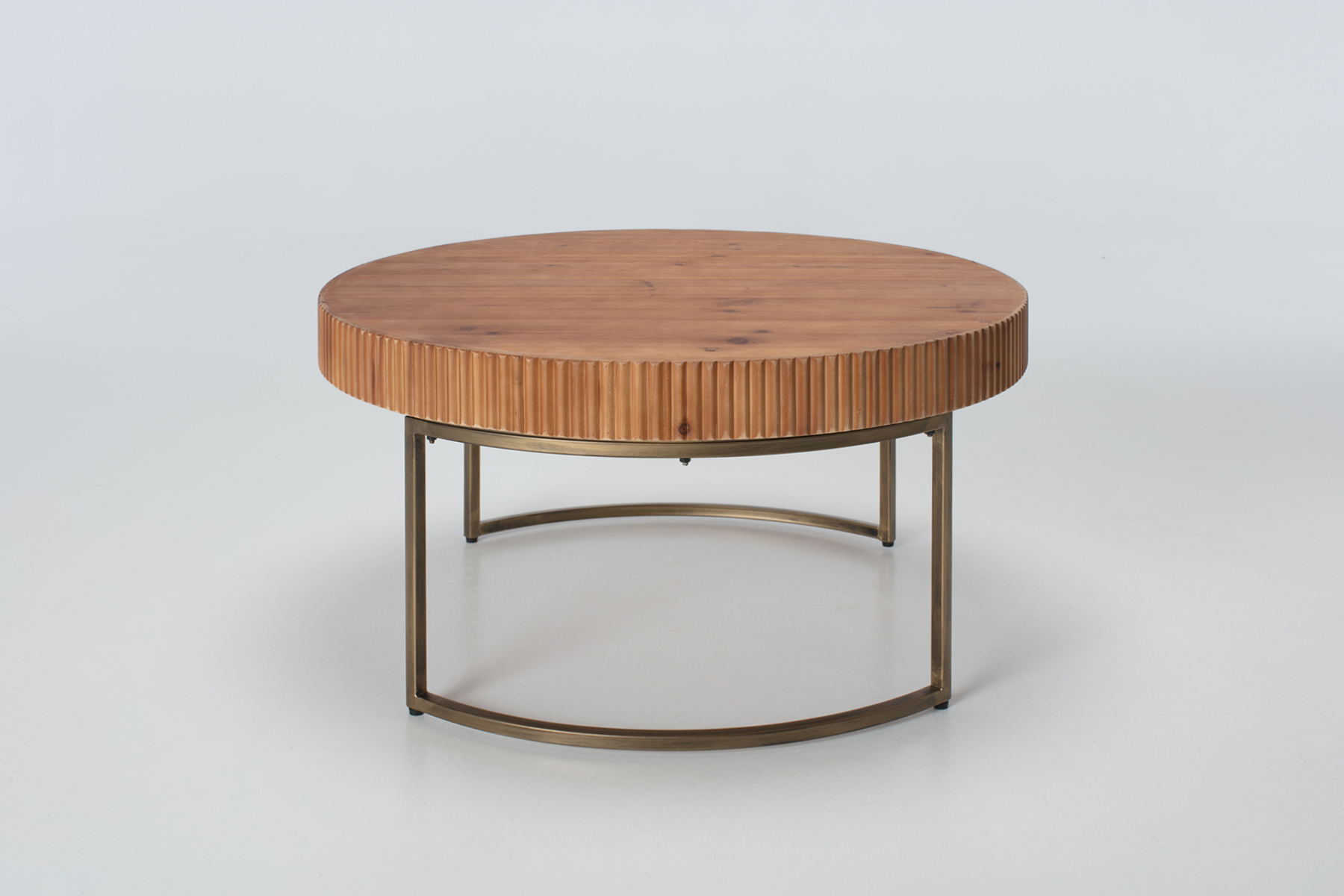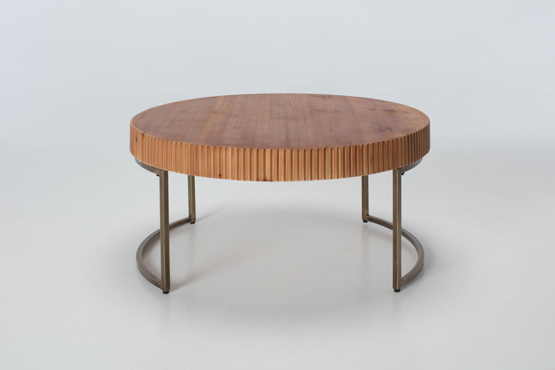 80cm Round Coffee Table with Fluted Wood Top and Metal Frame
