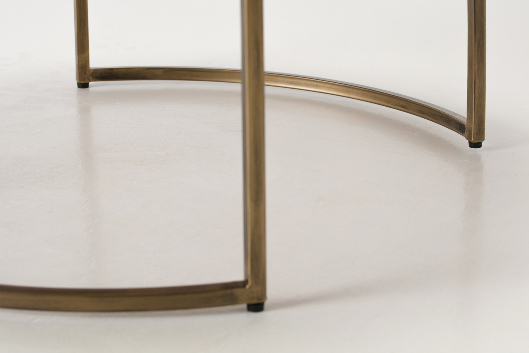 • Sweeping open base – Circular metal frame that offers solid support while keeping your flooring visible