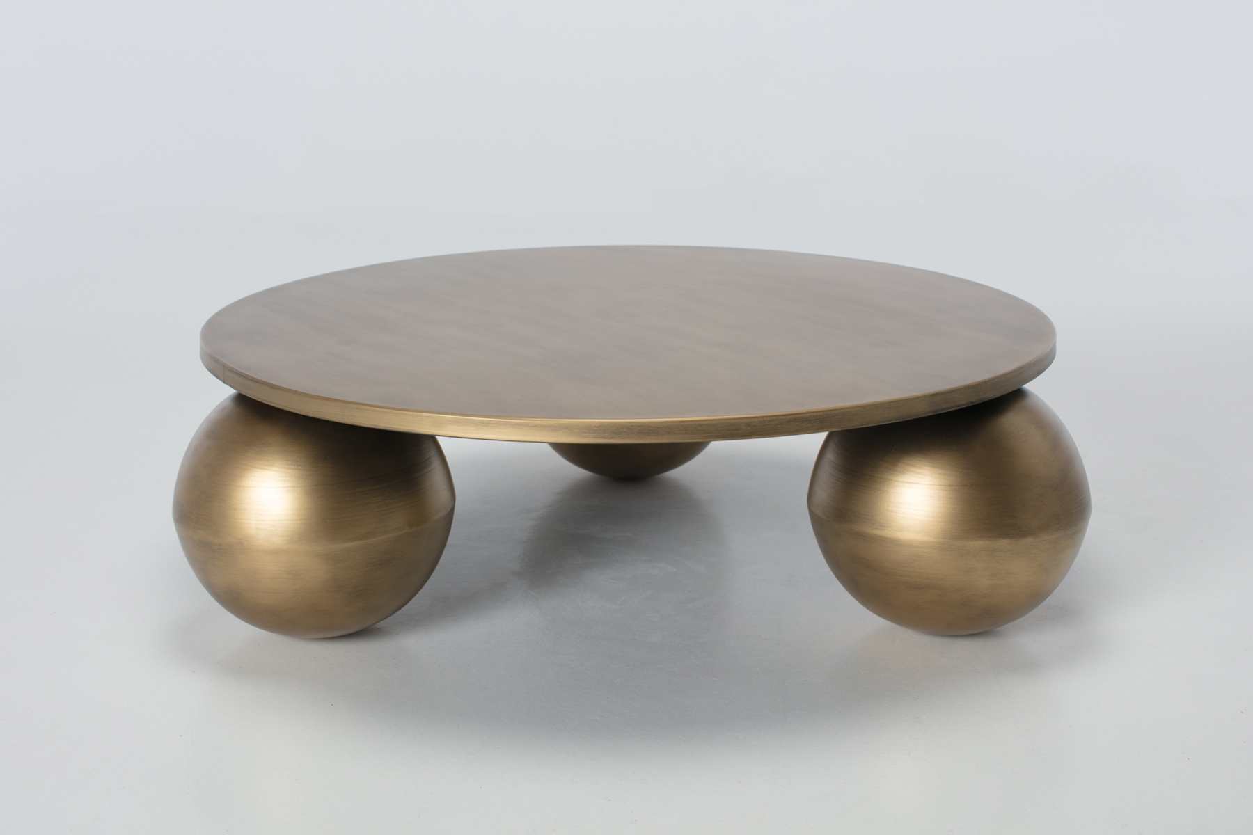 95cm Round Coffee Table with Brushed Brass Spherical Base
