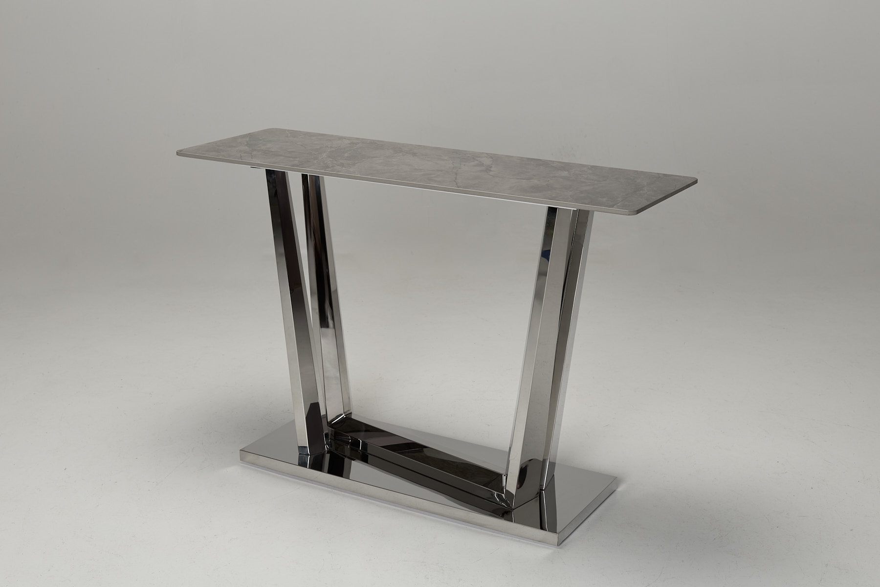 1.2m Stone Console Table, Tundra Grey with Stainless Steel Base