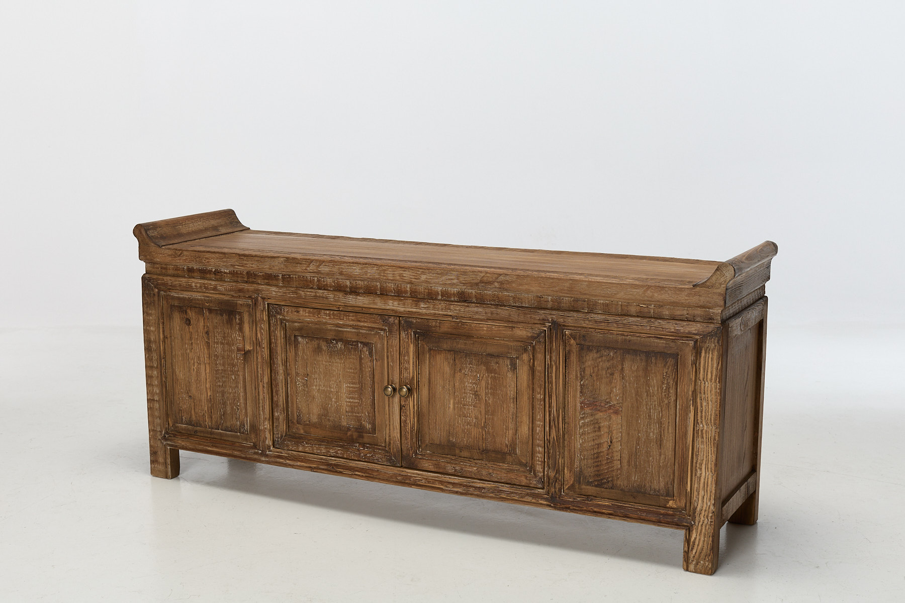 At 1.35m in length, it’s sized just right for living rooms, dining spaces or hallways that need a little extra storage and a lot more charm. The top surface features gently curved edges at both ends, a subtle detail that softens the shape and hints at the artisan touch behind it. Down below, four solid block legs keep things grounded and sturdy.
