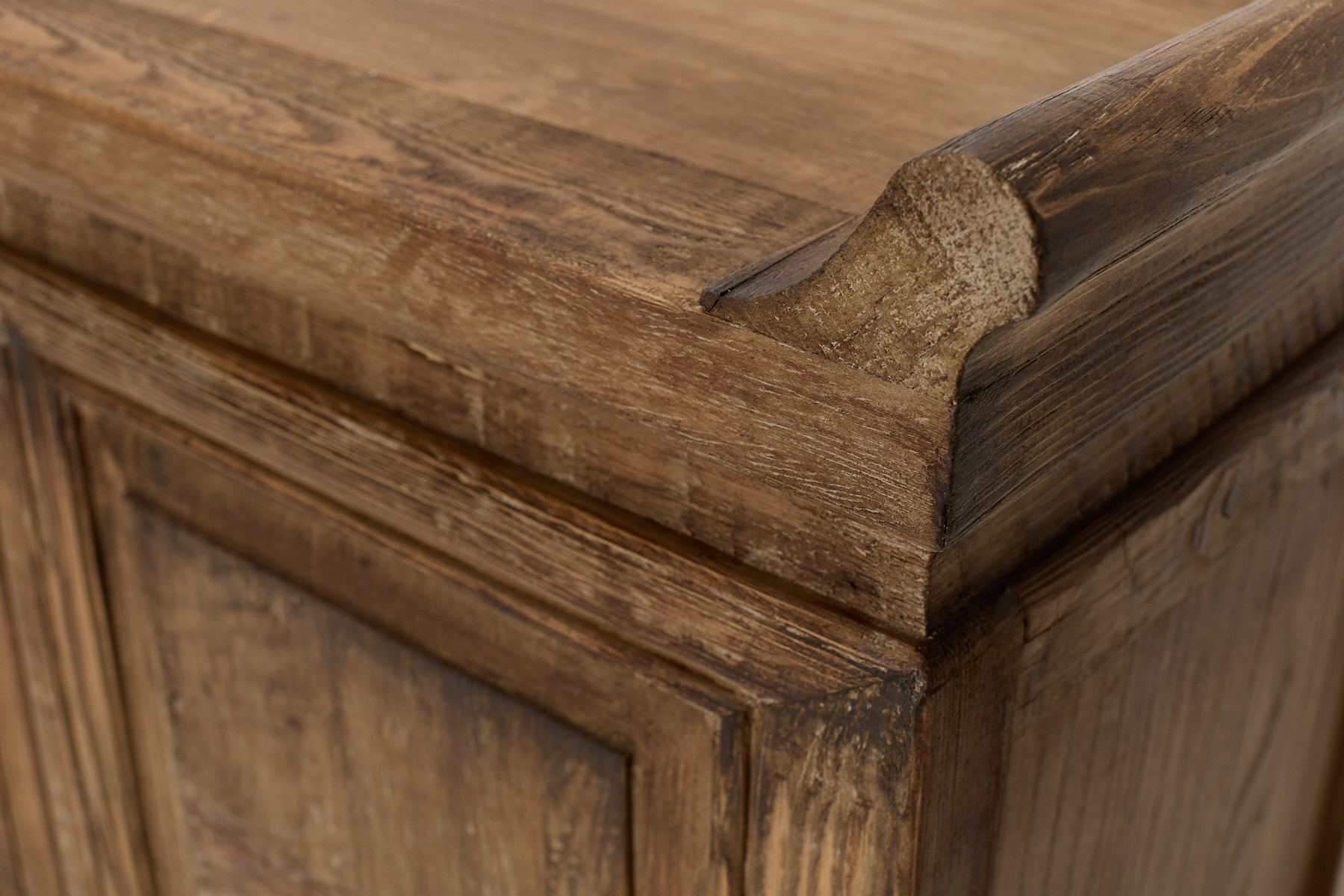The wood itself is the real story. Salvaged and repurposed, every grain, knot and colour variation is a beauty mark. Proof that this isn’t machine-made furniture. It’s built by hand, using reclaimed wood, and finished in a warm, light brown tone with a rustic, aged look. That distressed finish? Done by hand, one piece at a time.