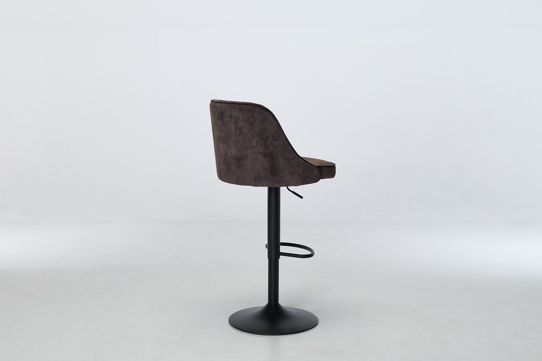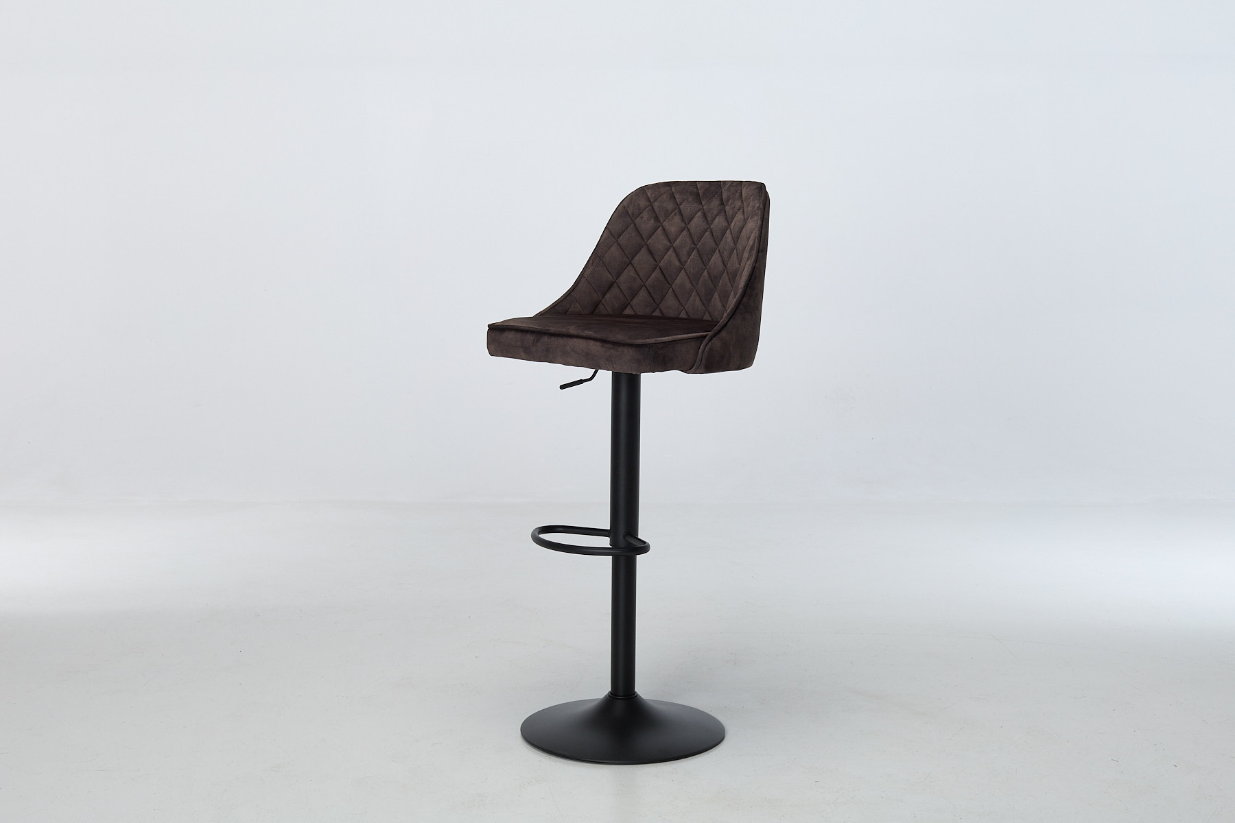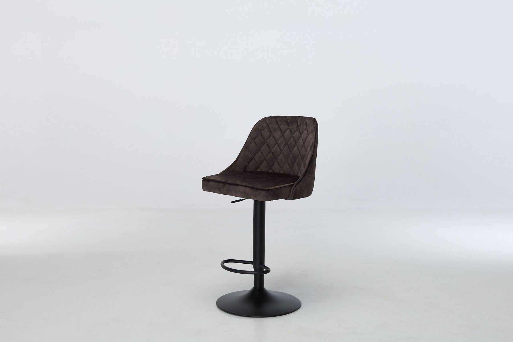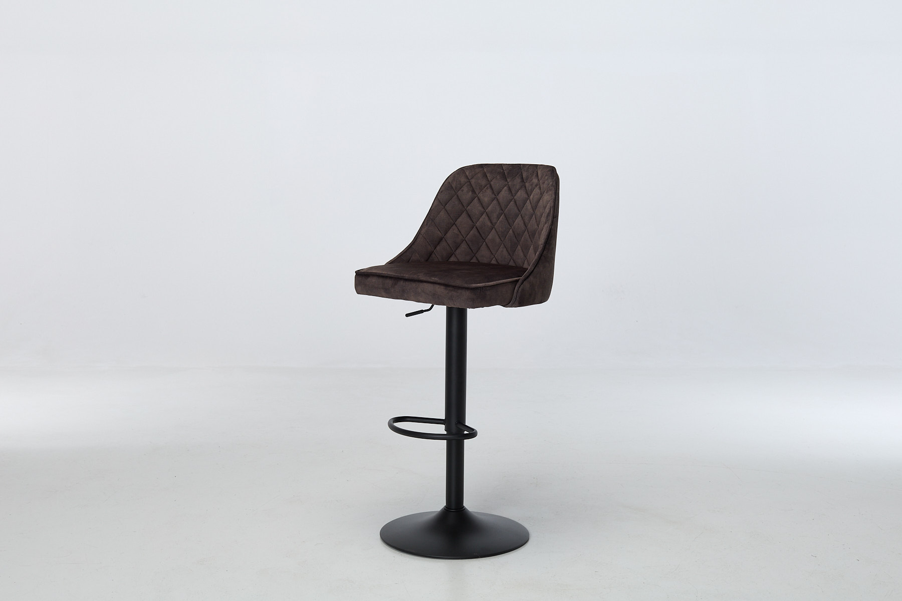 Venice Bar Stools bring texture, movement and a bit of cheek to your kitchen or dining zone. The mocha grey velvet wraps around a gently curved seat, stitched with a diamond-quilted pattern that adds depth without shouting. Piped edges give it a tailored finish, while the black metal pedestal base keeps things grounded. Each stool swivels 180° with auto-return, so you’re never left twisted. The footrest ring adds balance (visually and physically) and the height adjust makes it work across breakfast bars, counters and high tables.