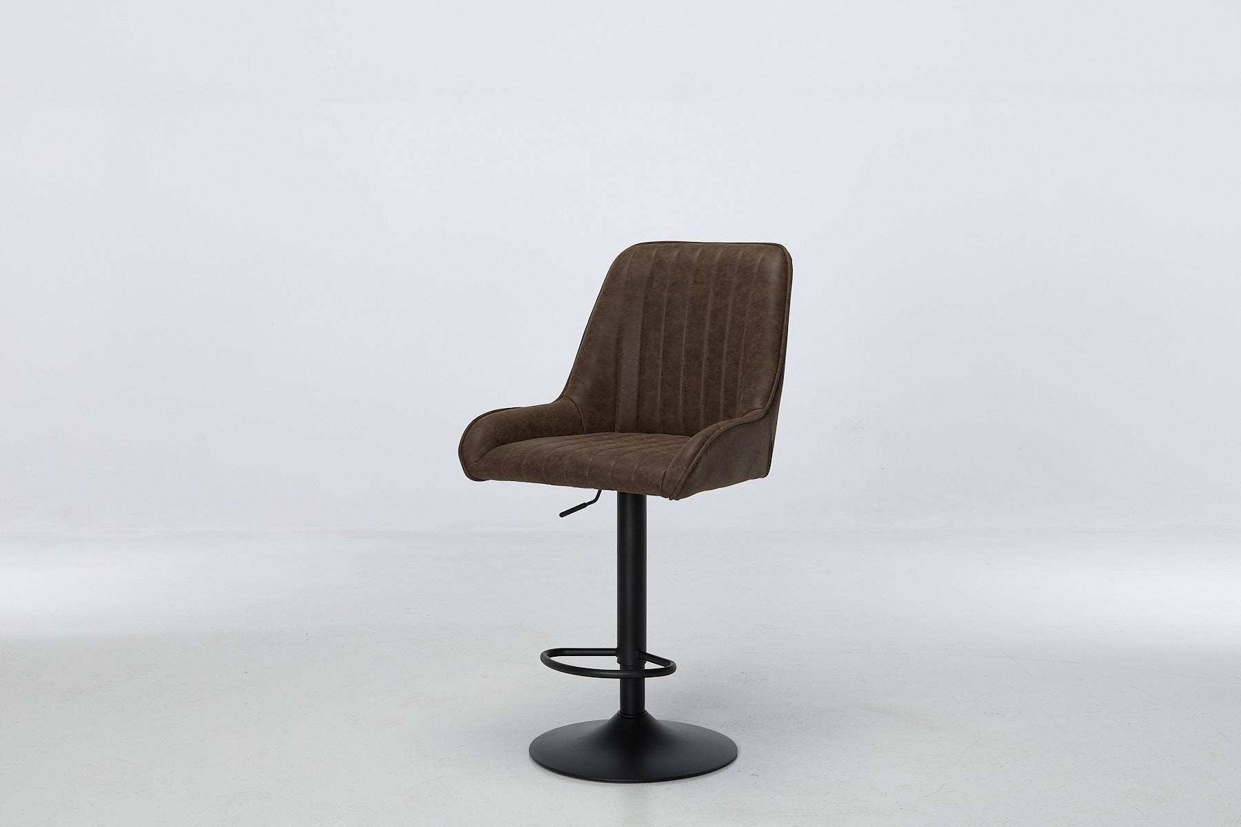 Verona’s design gets the balance right. Robust materials, soft comfort and a bit of retro charm. The brown faux leather (also known as vegan leather) has a gently aged finish that looks lived-in from day one. It’s wipe-clean and built to last, which means it handles busy mornings and messy evenings without fuss. The seat shape is roomy and slightly winged, so you get extra support without feeling boxed in. Vertical channel stitching adds texture and depth, giving the whole stool a ribbed, retro feel. The black metal base grounds the look and keeps things sturdy.