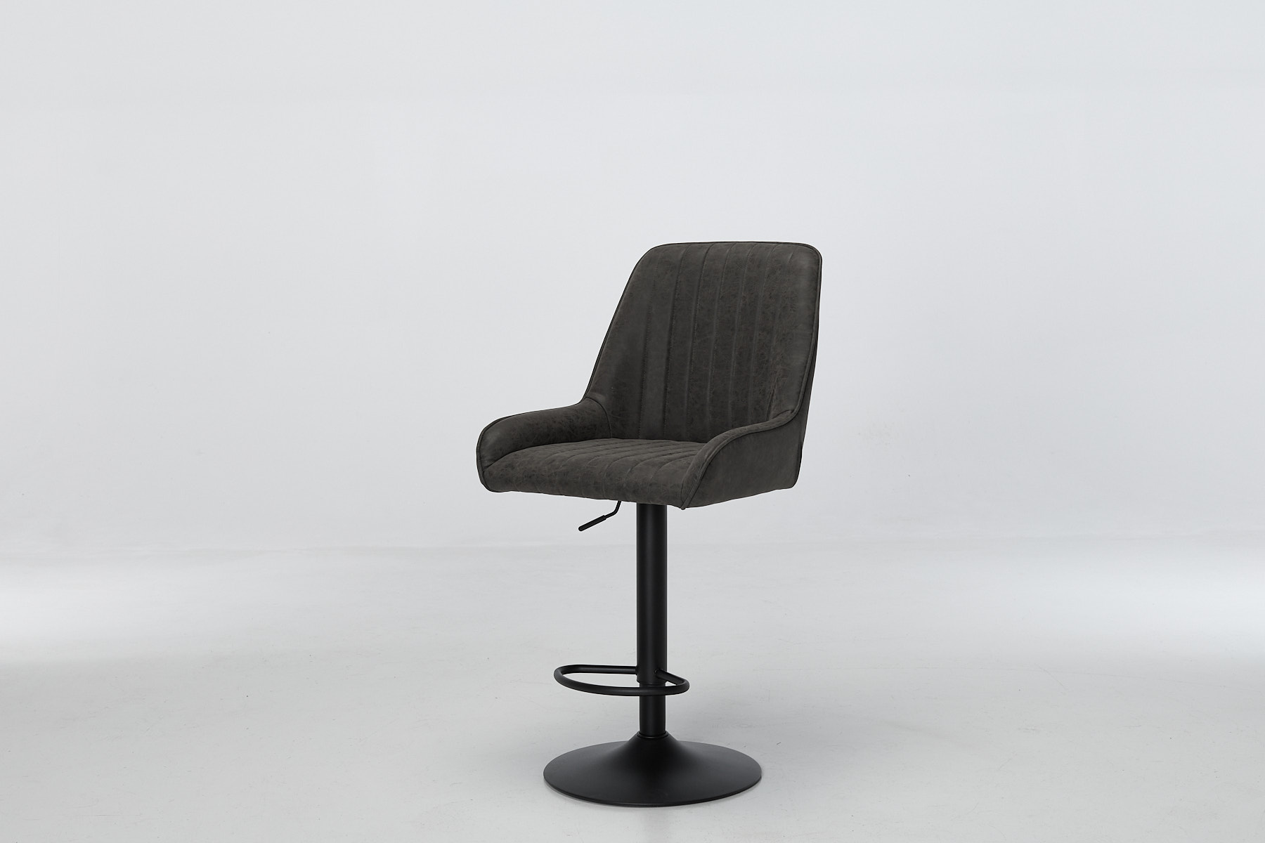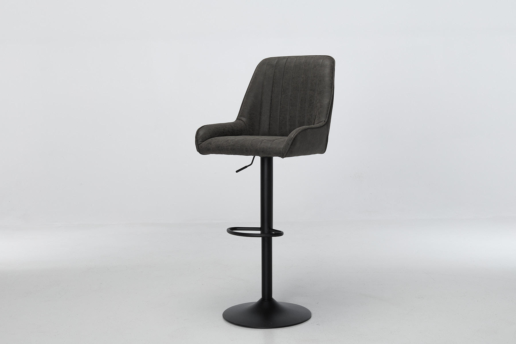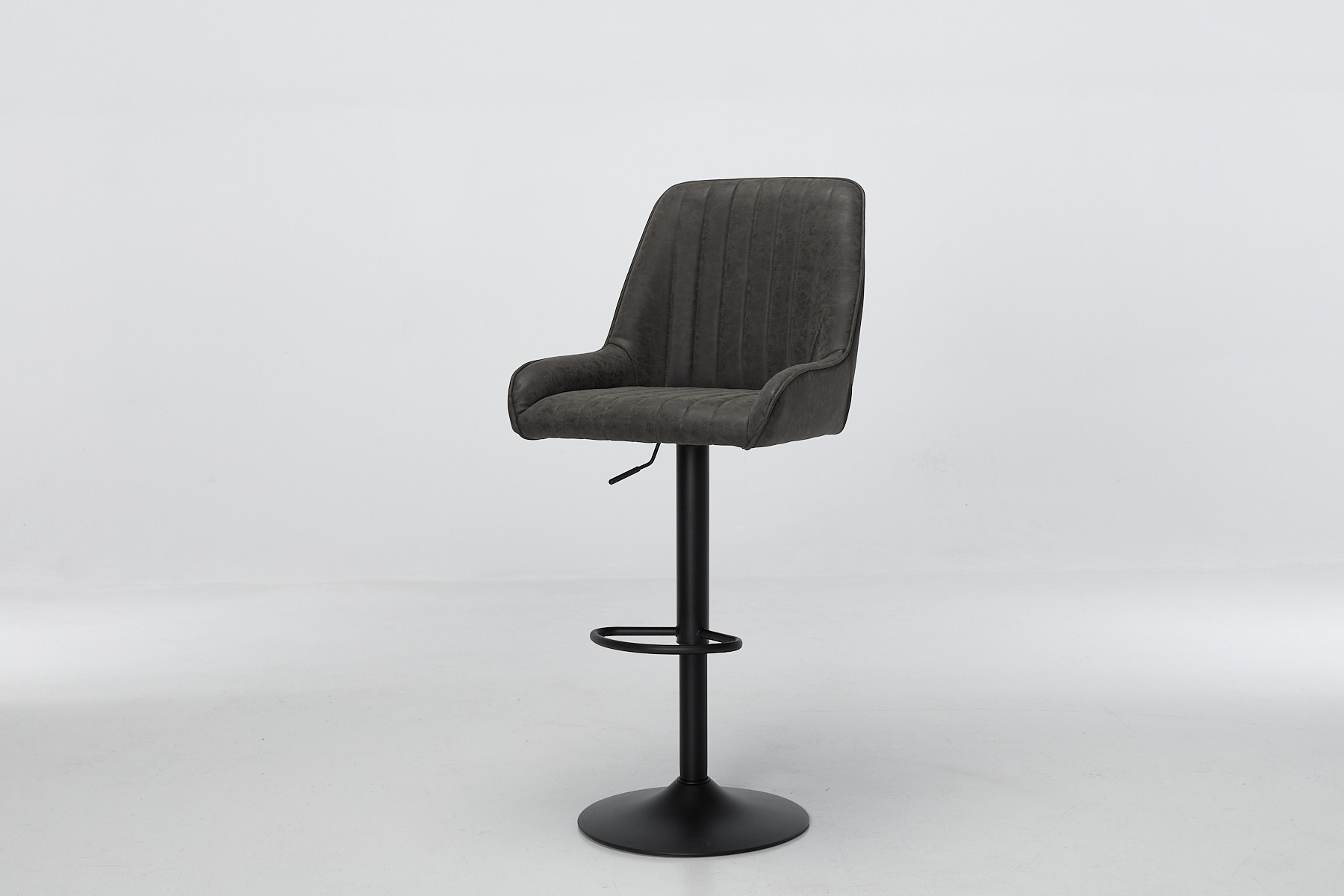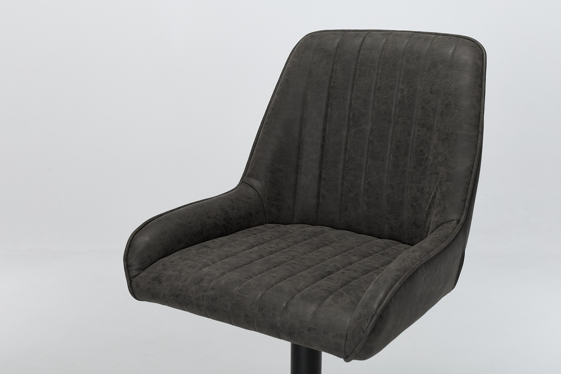 Each stool is wrapped in soft grey faux leather (also known as vegan leather) with a gently aged finish that gives it a lived-in look without the upkeep. The vertical channel stitching adds texture and a subtle retro edge, while the slightly winged seat shape gives you proper support where it counts. Foam-filled and shaped for comfort, Verona’s made for long sits, busy days and everything in between.